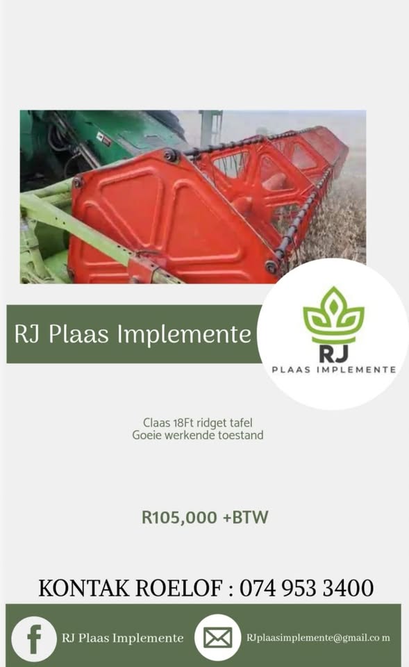 Claas 18ft ridget tafel Goeie werkende toestand R105 000 + BTW KONTAK ROELOF :