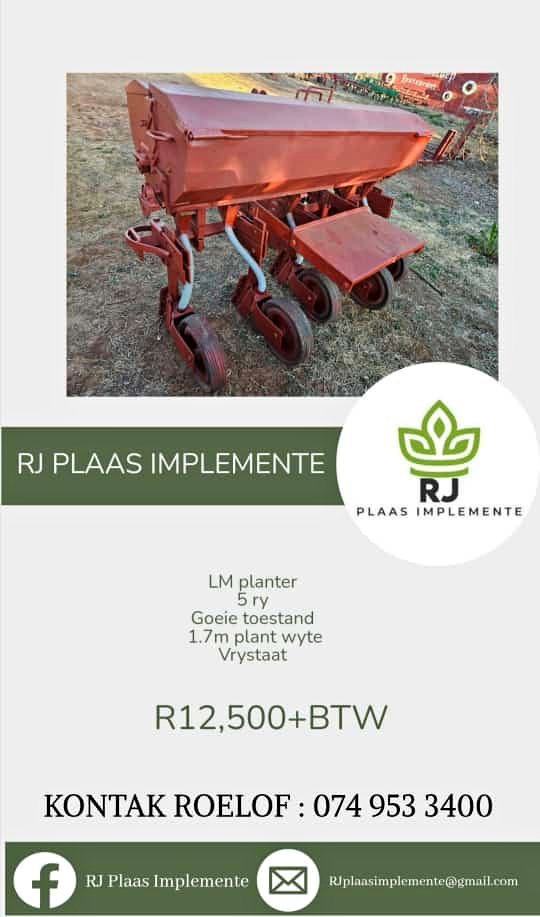 LM Planter 5ry Goeie toestand 1.7m plant wydte Vrystaat R12 500 + BTW KONTAK ROELOF :
