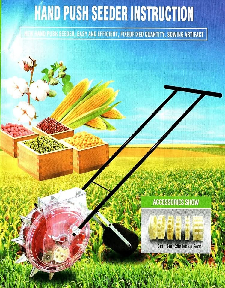 Manual corn planter/ Hand Push seeder For sowing corn, cotton, beans etc Planting mouth: 8holes Planting Distance: 8inches Manual corn planter/ Hand Push seede Warranty on all our products and Tractors, full parts and after a sales backup. Contact us for all your Agricultural machinery and tractor. For more information Contact Gift on