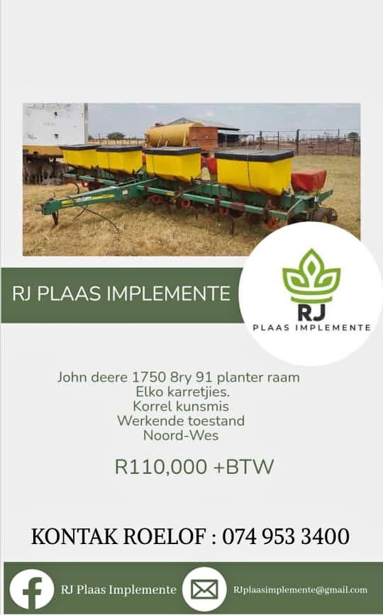 John Deere 1750 8ry 91cm planter raam Elko karretjies Korrel kunsmis Werkende toestand Noord-Wes R110 000 + BTW KONTAK ROELOF :