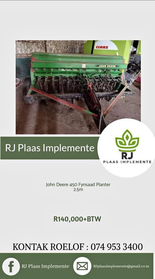 John Deere 450 Fynsaad Planter 2.5m R140 000 + BTW KONTAK ROELOF :