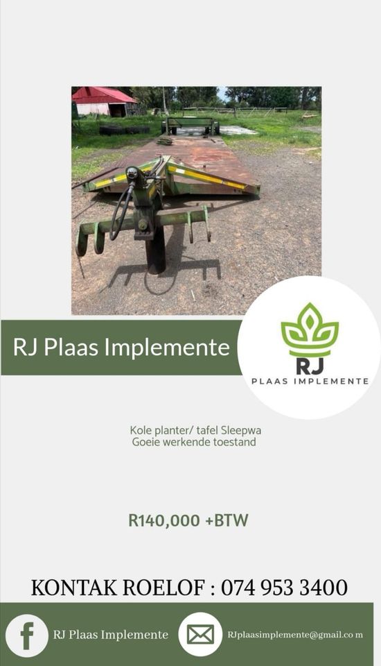 Kole Planter / tafel sleepwa Goeie werkende toestand R140 000 + BTW KONTAK ROELOF :