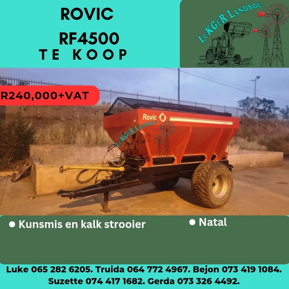 !!PRYS VERLAAG!! Rovic RF4500 Kunsmus/kalk strooier. R240000.00 + vat, Natal. Kontak Gerda 0733264492view more