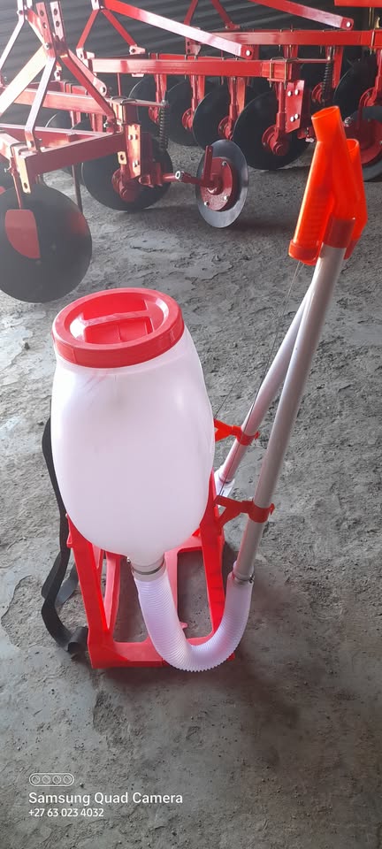 20 Liter strong tank 2 hose for simultansouly covering two rows Useful for all granular fertilizer like Urea, DAP, MOP Clutch to release fertilizer near plant roots Manual and Light weigh