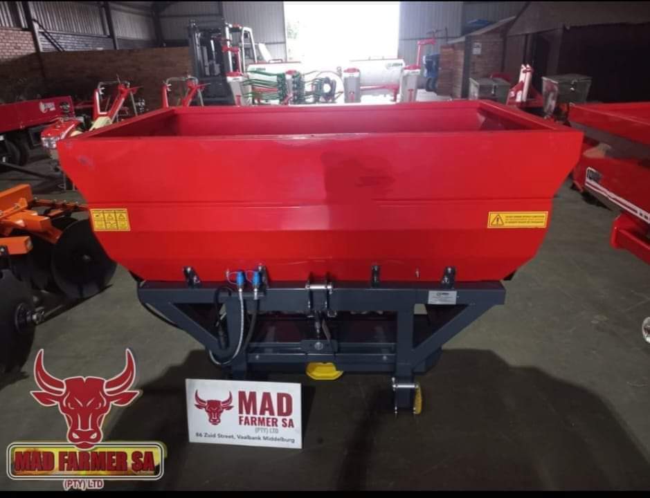 New 1500l double disc fertilizer spreaders available for sale at Mad Farmer SA