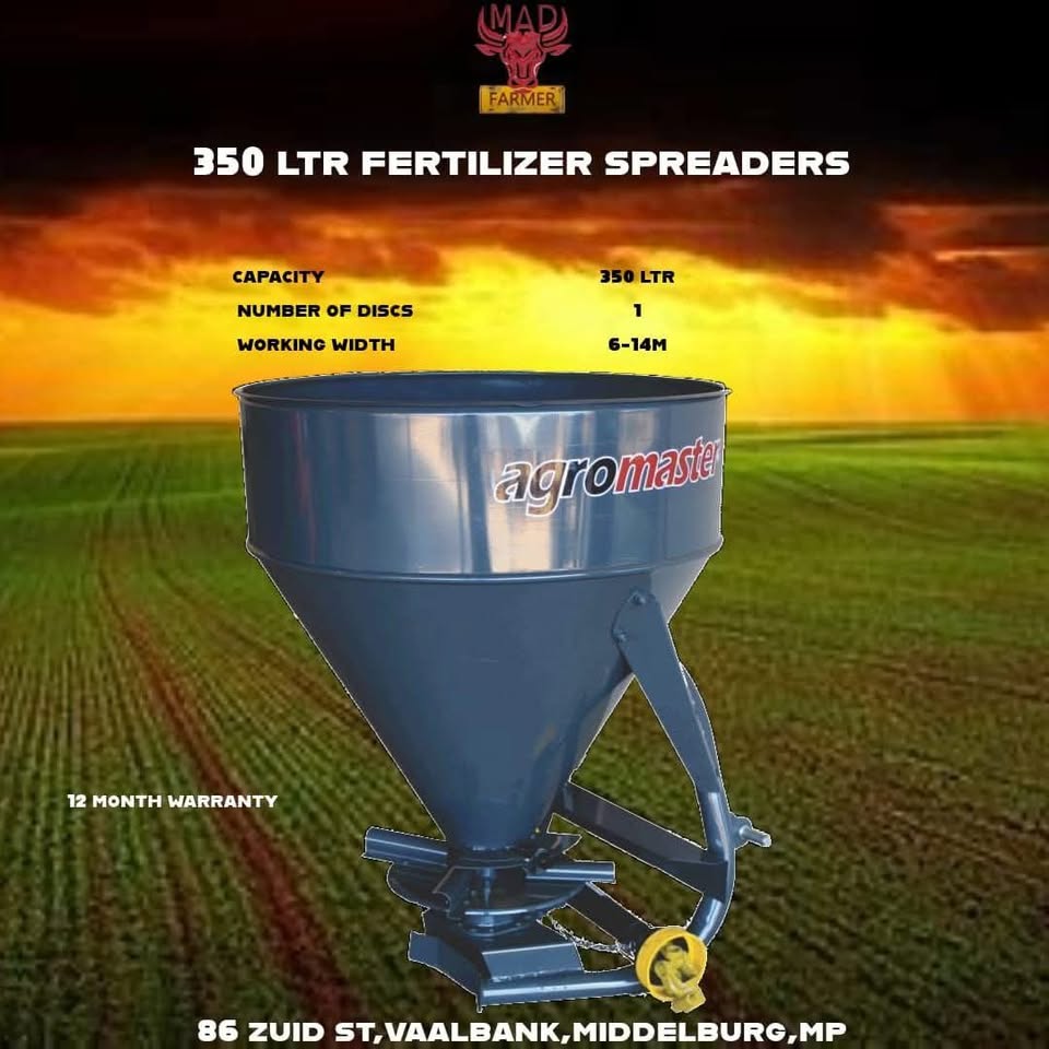 ‼️New Agromaster 350l fertilizer spreaders available for sale 📍 86 Zuid street Middelburg Mpumalanga ° Working width : 14m ° Total weight : 77kg ° Single disc ☎️ Laetitia Campher : 0761541519view more 📩 sales01@madfarmersa.co.zaview email...