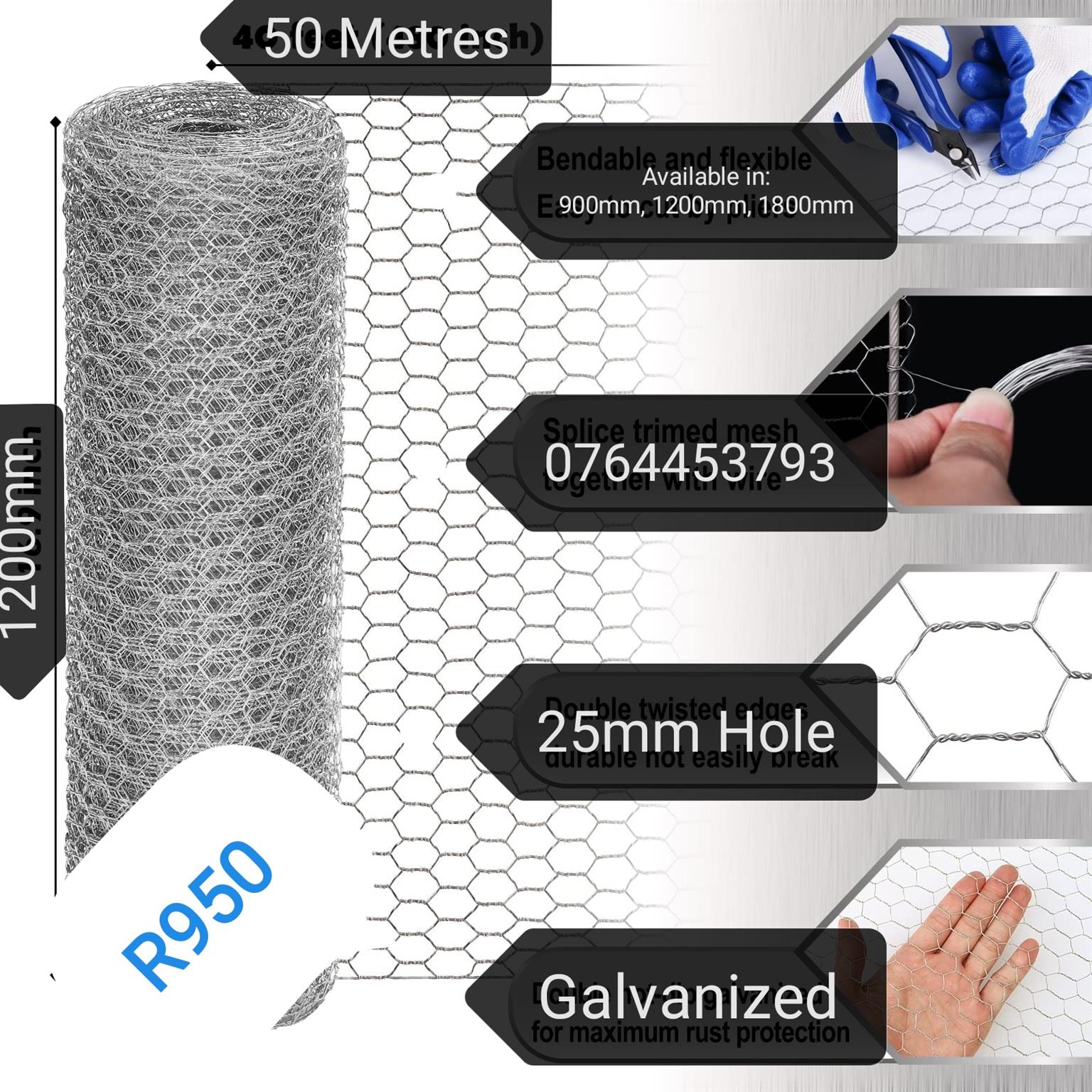 Chicken mesh 1200mmx25mmx50m R950