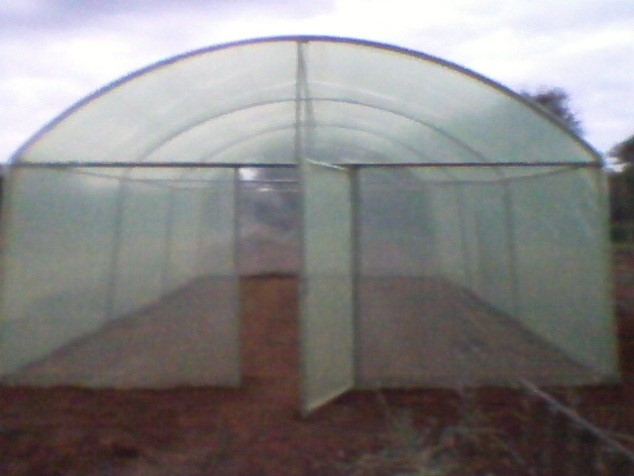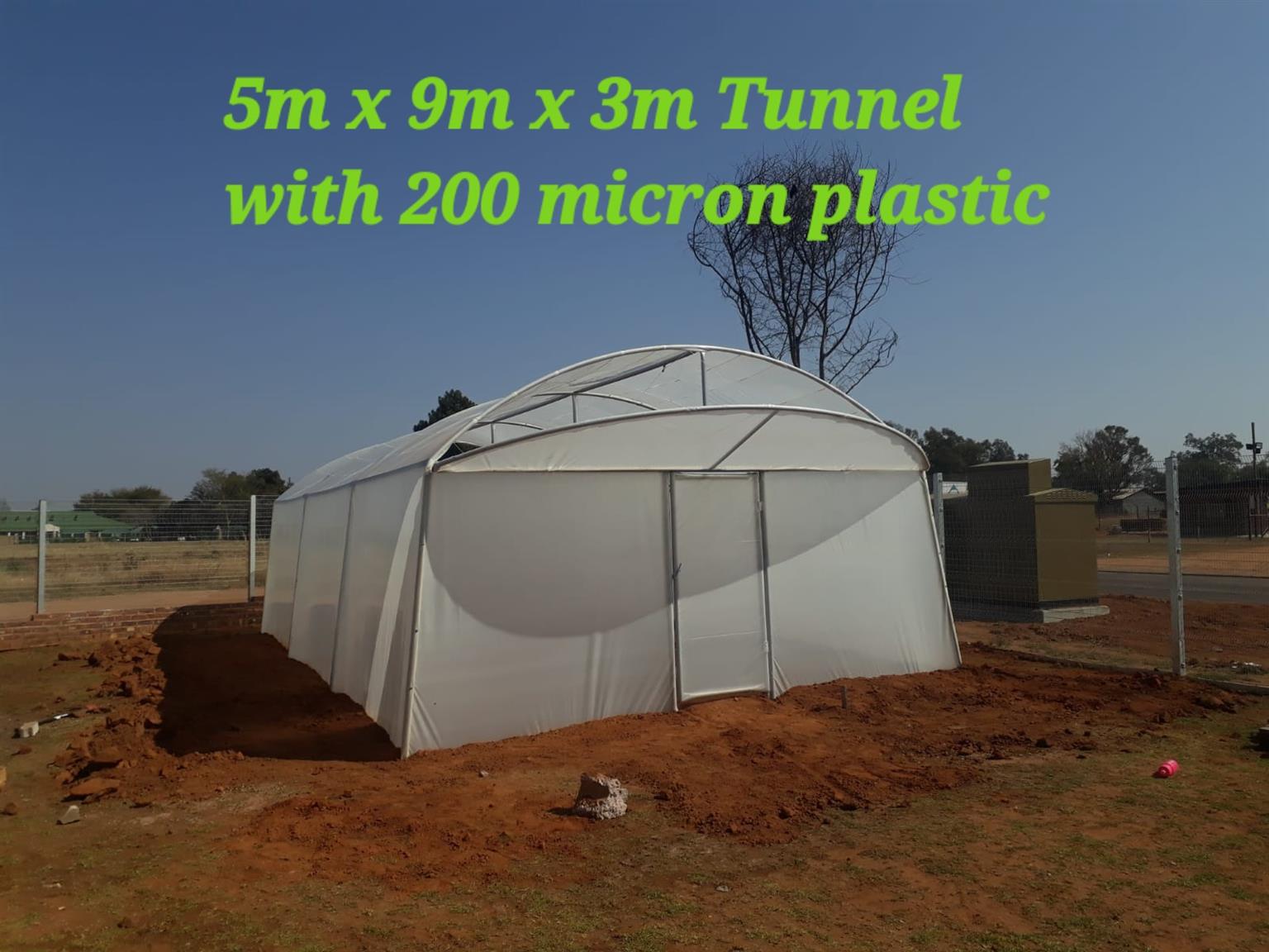 5m wide x 9m long x 3m high B grade steel greenhouse tunnel for sale, 2 ventilation flaps , 1 gate and all accessories included for installation. Limited stock