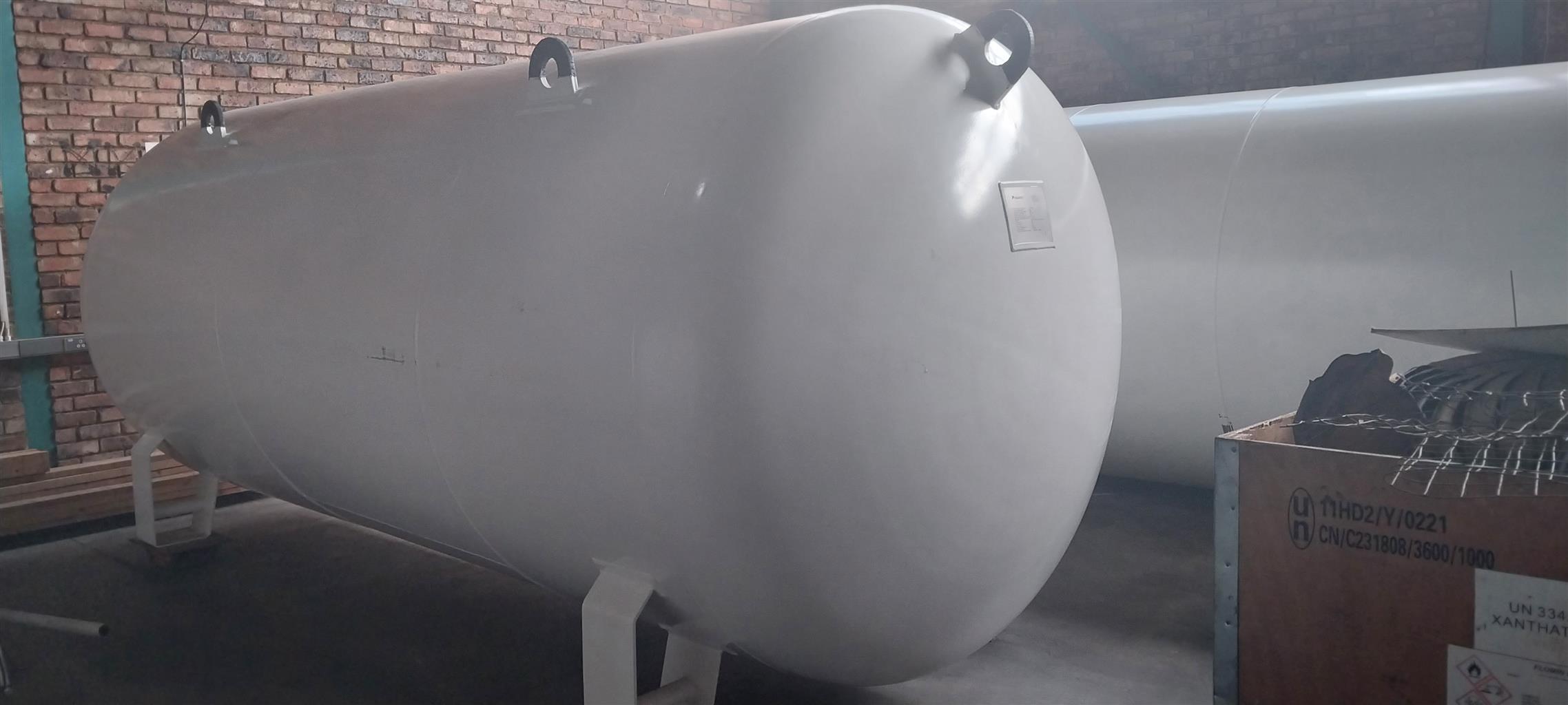 BRAND NEW, HORISONTAL, ABOVE GROUND, LPG STORAGE TANK WITH ALL FITINGS AROUND AND TUV(SA) CERTIFICATE OF CONFORMITY