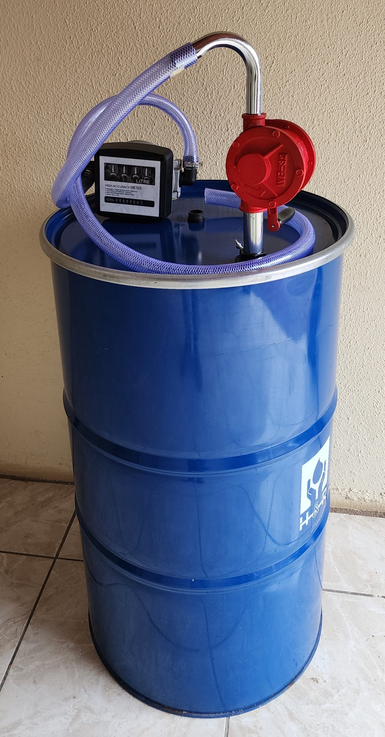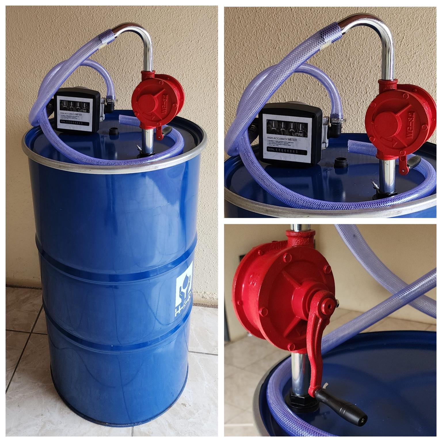 You can use it as a small flowbin or bowser if yiu dont want anything big . The 200 Litre Drum Pump set is an efficient and reliable solution for transferring fluids from barrels, drums, or storage tanks. This set includes a 200-liter drum, a metered pump with a flow rate of up to 120 liters per minute, The pump has an accuracy of ±1% .