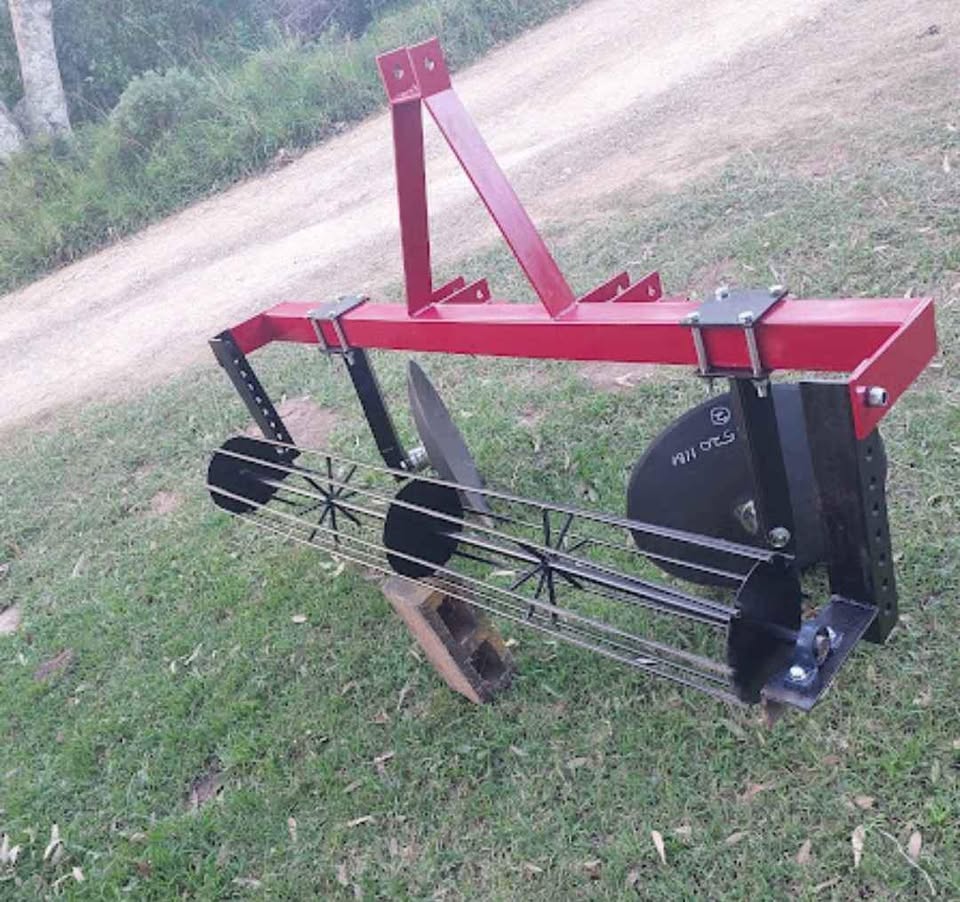 Single Row Ridger for planting vegetable seeds, adjustable height for different height ridges, adjustable discs for different width ridges, leveling bar to smooth tops of ridges, roll bar to break up soil clumps JG Terblanche