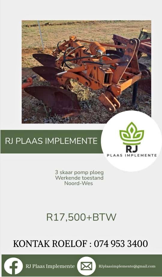 3 Skaar pomp ploeg Werkende toestand Noord-wes R17 500 + BTW KONTAK ROELOF :