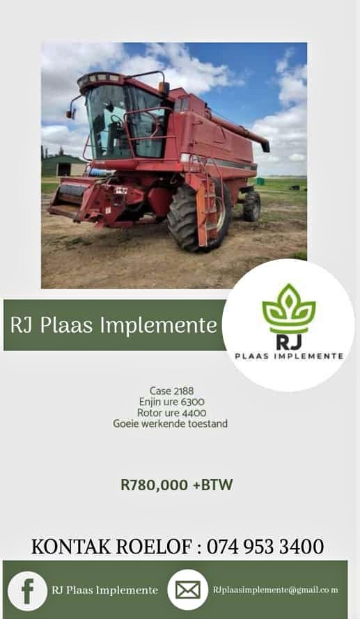 Case 2188 Enjin ure 6300 Rotor ure 4400 Goeie werkende toestand R780 000 + BTW KONTAK ROELOF :
