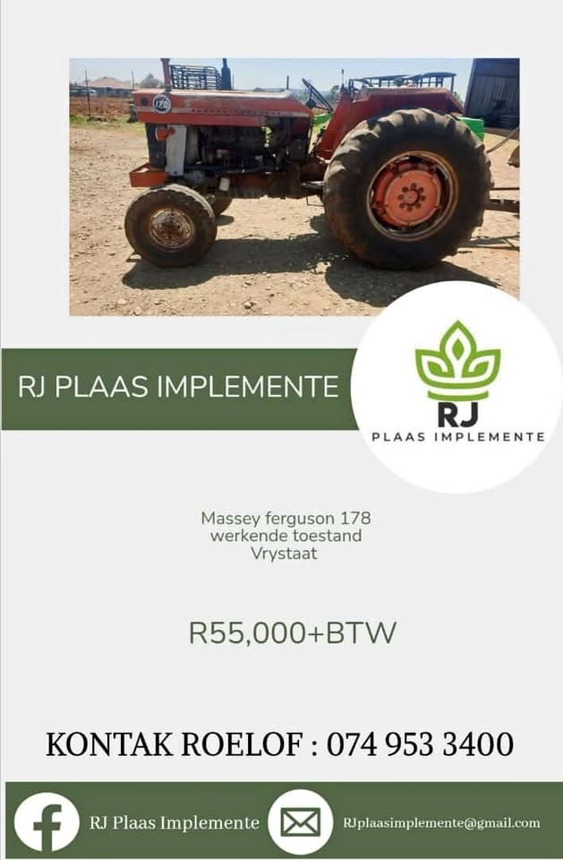 Massey Ferguson 178 Werkende toestand Vrystaat R55 000 + btw KONTAK ROELOF :