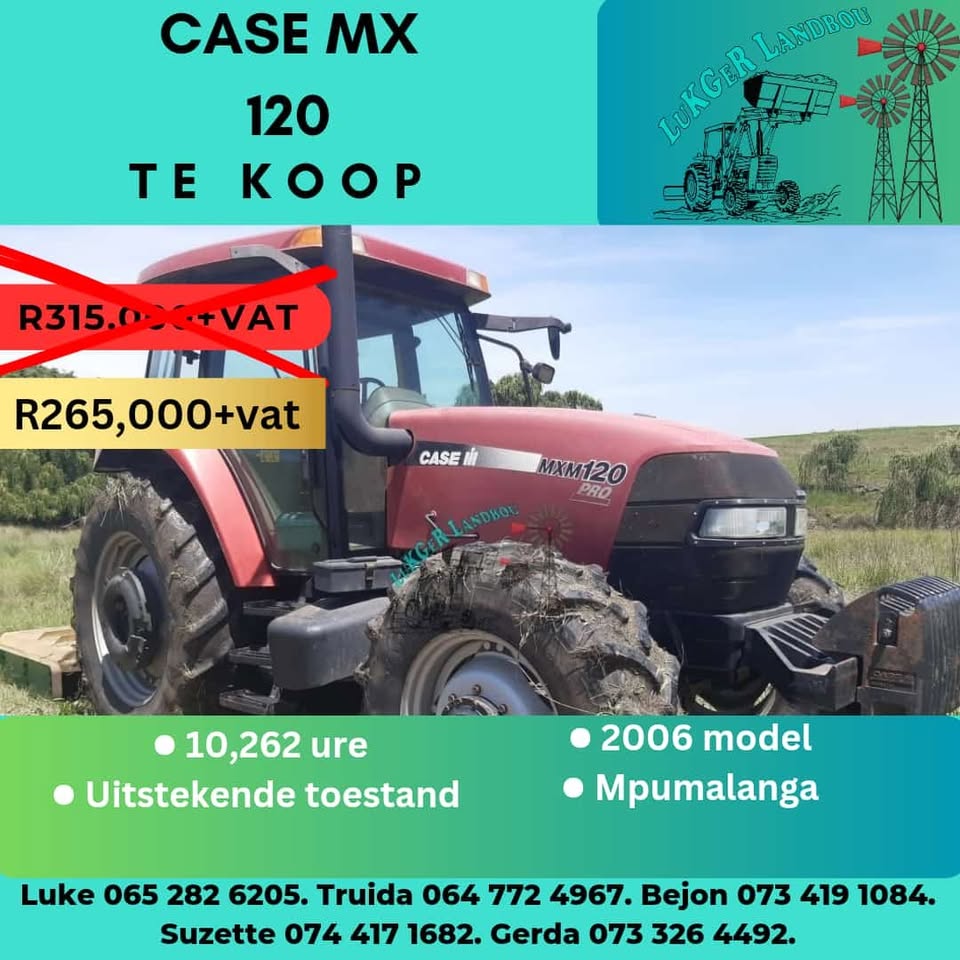 Case MX 120, 2006 model, 10262 ure, uitstekende toestand, Mpumalanga. Kontak Gerda 0733264492view more