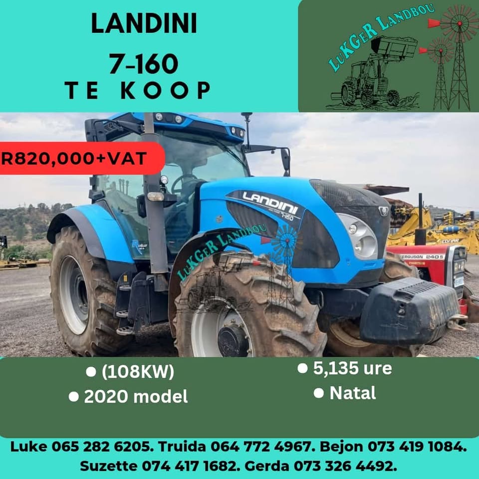 !!PRYS VERLAAG!! Landini 7-160, 2020 model, 108kw, 5135 ure, R820000.00 + vat, Natal. Kontak Gerda 0733264492view more
