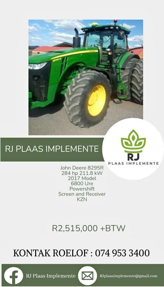 John Deere 8295R 248 hp 211.8kW 2017 Model 6800 ure Powershift Screen en Reciever KZN R2 515 000 + BTW KONTAK ROELOF :