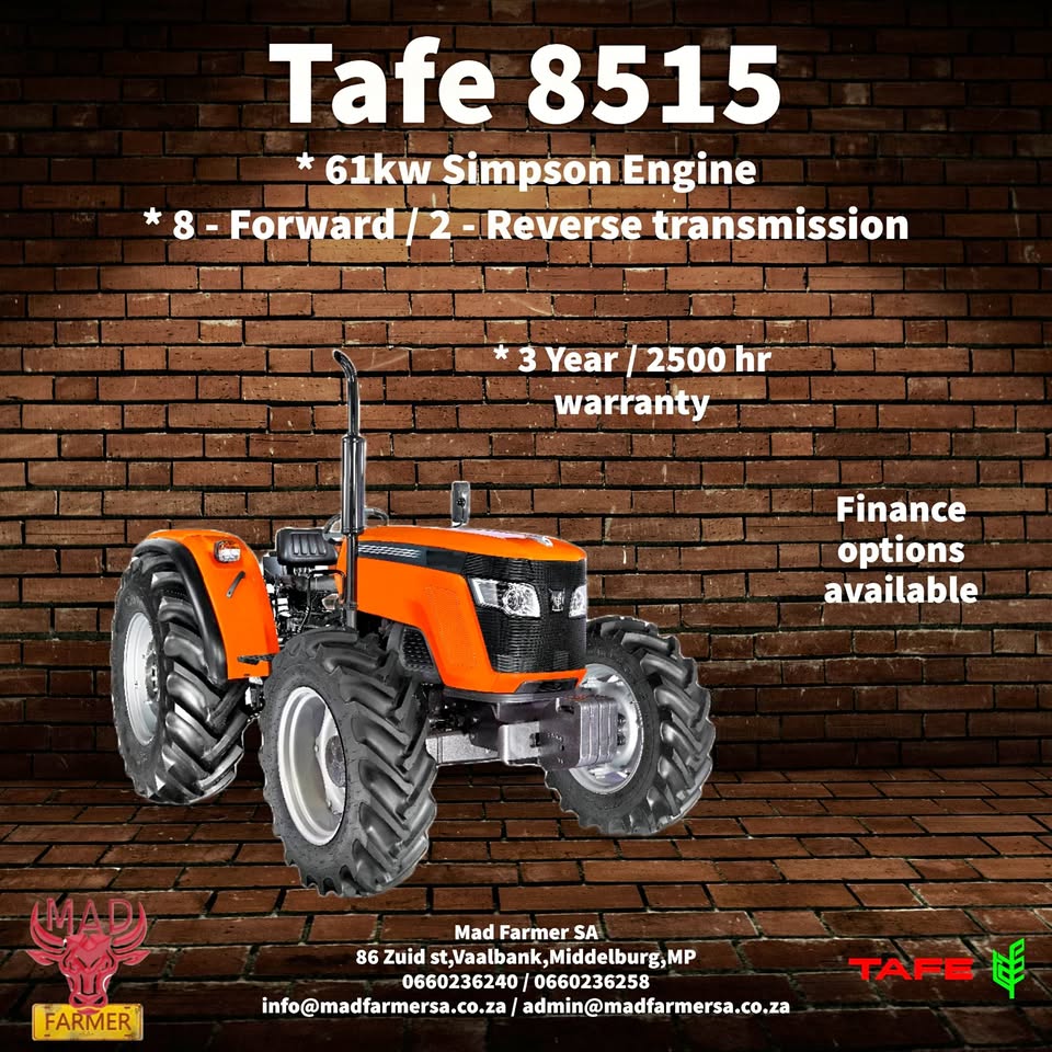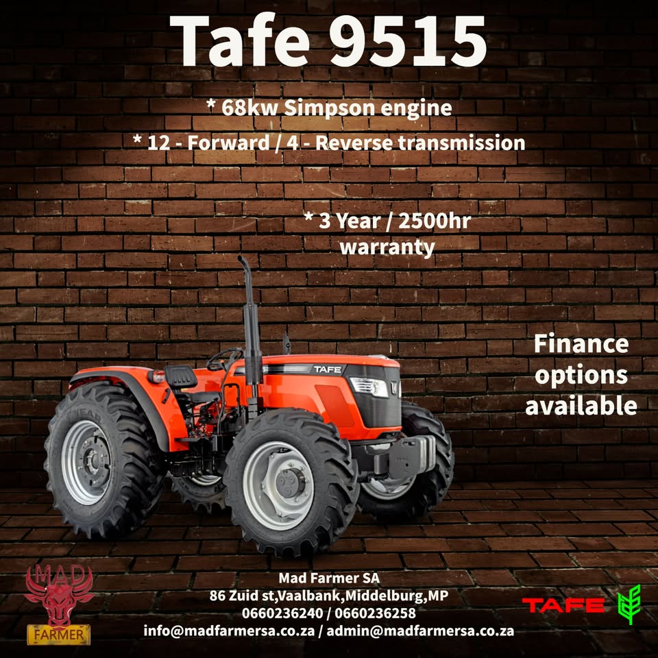 Available from your trusted Tafe dealer in Middelburg,Mp Full workshop and aftersales service in place Fast and professional service Mad Farmer SA 86 Zuid st,Vaalbank,Middelburg,MP