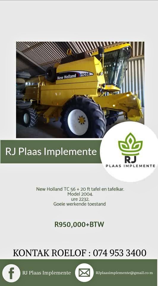 New Holland TC 56 + 20ft tafel en tafelkar Model 2004 2232 ure Goeie werkende toestand R950 000 + BTW KONTAK ROELOF :