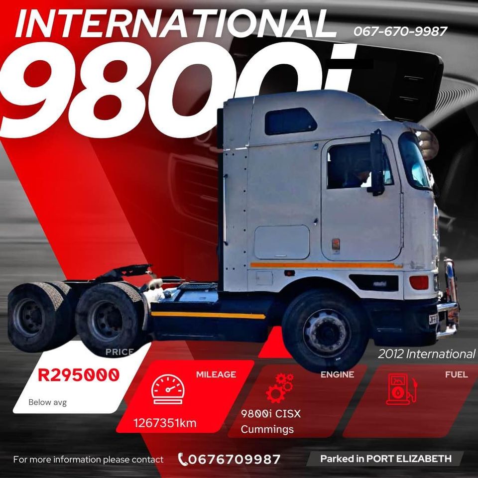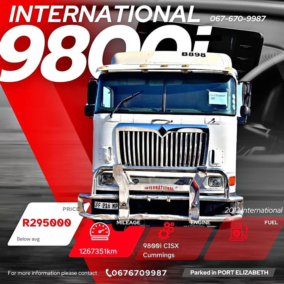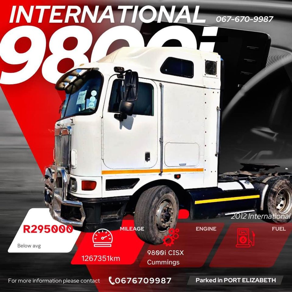 Don't miss out! This well-maintained 2012 International 9800i Mid Roof Double Axle Truck is available for immediate sale! Key Features: • Year: 2012 • Make: International • Model: 9800i Mid Roof • Double Axle: Ideal for heavy-duty hauling • Mileage: 1237488km • Tyres: Good condition • Engine and Gearbox: Clean and well-maintained • Papers: All documentation available and up-to-date Condition: Clean truck, inside and out Regularly serviced and maintained Price: R295,000 (Excluding VAT) Location: Parked in Port Elizabeth Contact: Call for viewing and address • Urgent sale, don't miss out! • Ideal for long-haul, construction, or heavy-duty transport • Recent maintenance records available International 9800i Engine Highlights: • Powerful and fuel-efficient • Proven reliability and durability • Low maintenance costs