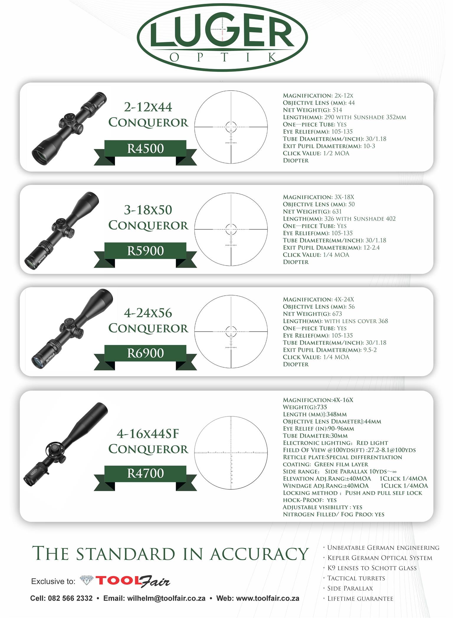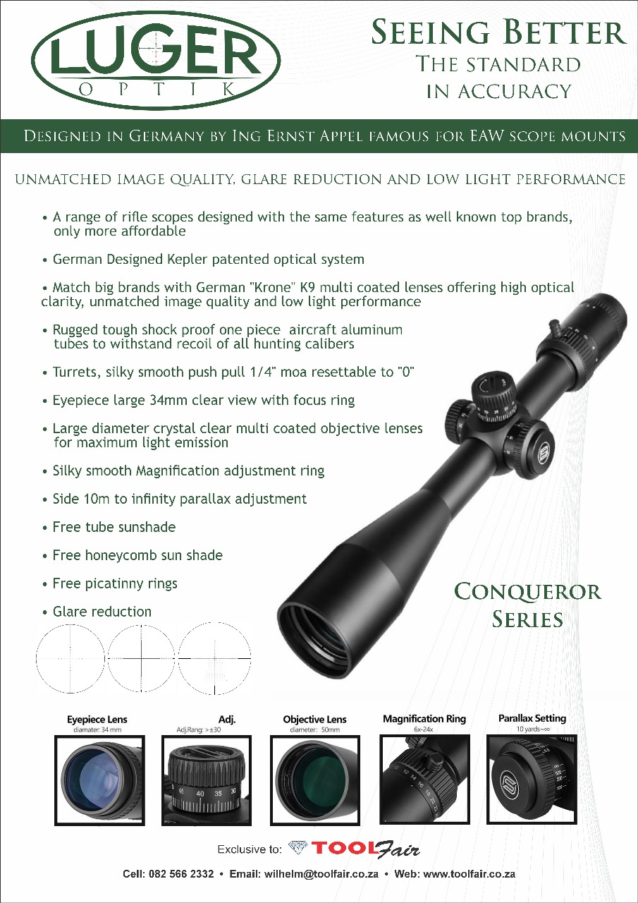 Luger Optic Conqueror hunting rifle scopes are designed in Germany to highest standards