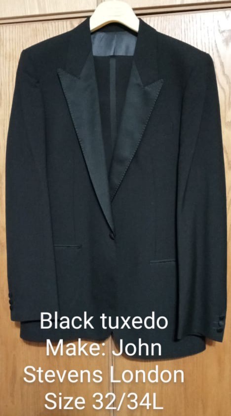 Very sophisticated black tuxedo with Satin finishes!!Make: John Stephens LondonSize: 32/34LOnly used once!