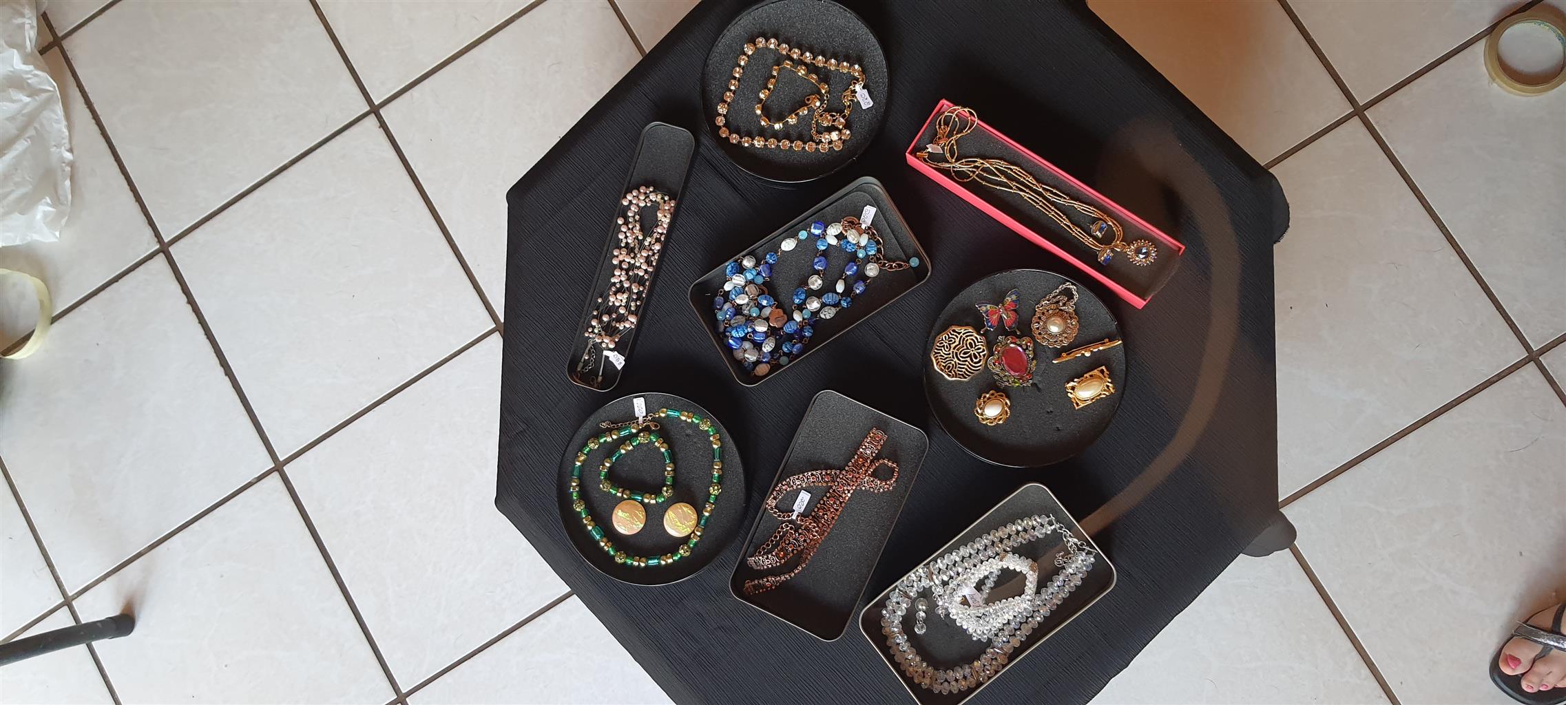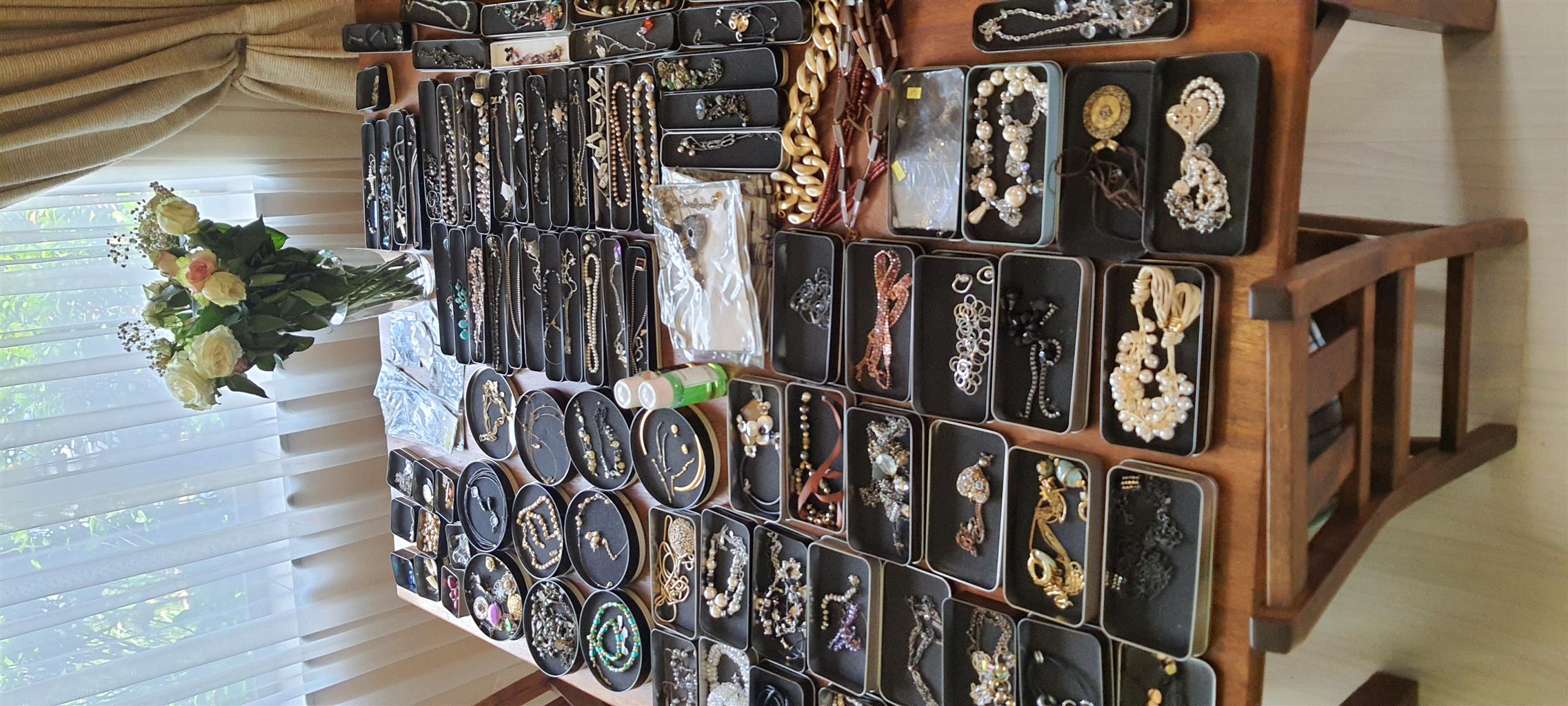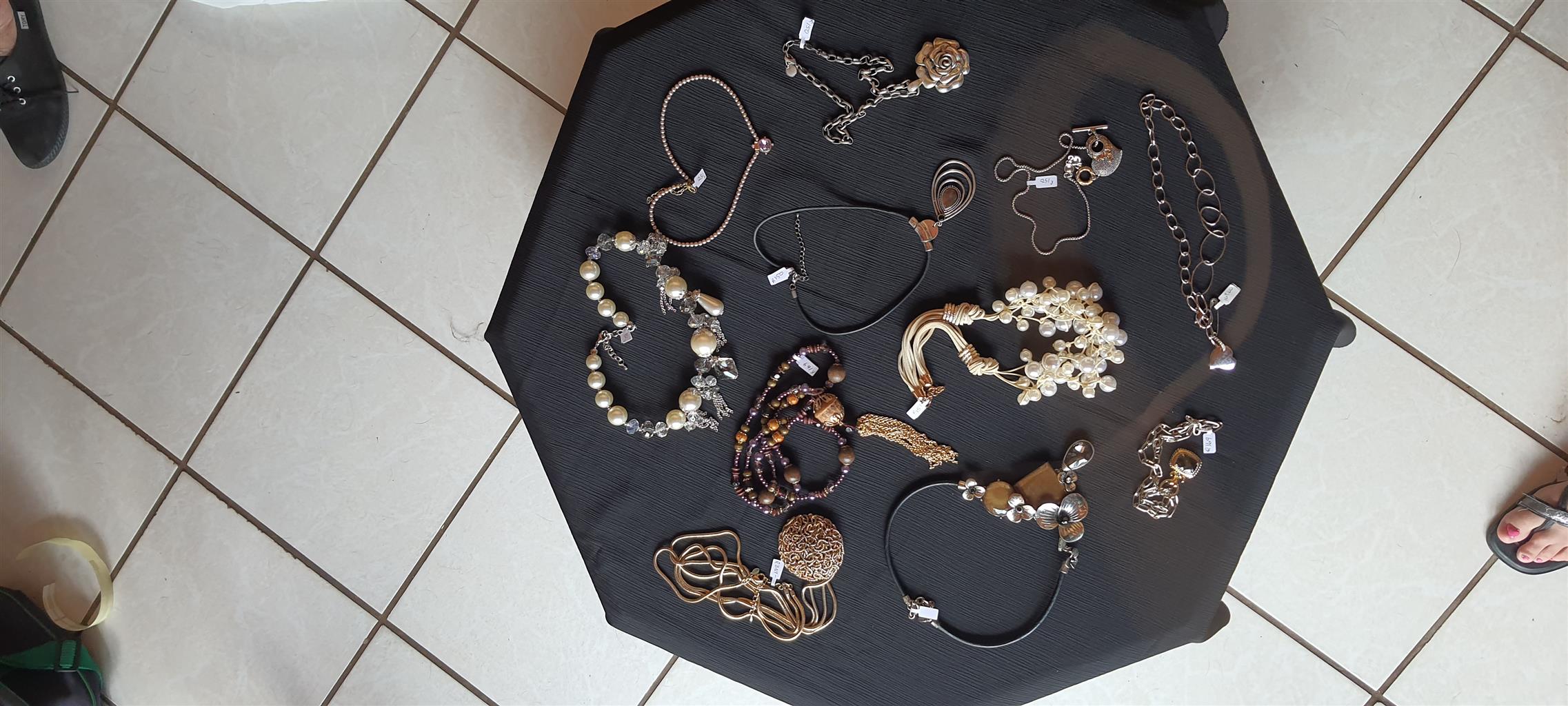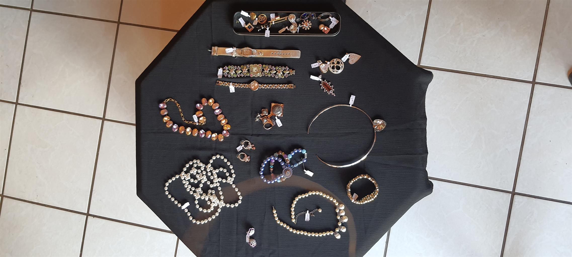 Honey jewelry stock to go. Items include necklaces, brooches, watches, earrings and rings for both men and women. Make an offer.