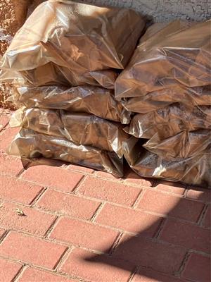 We have bluegum and blackwattle firewood. Medium 12 kg bags R18, big 25 kg bags R35 and unpacked 1 ton bakkie load R1 800