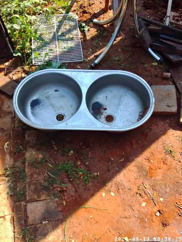 Stainless steel drop-in sink double @ R400 2nd hand and needs TLC Length 840mm x width 445mm x depth 150mm Collect and cash pls