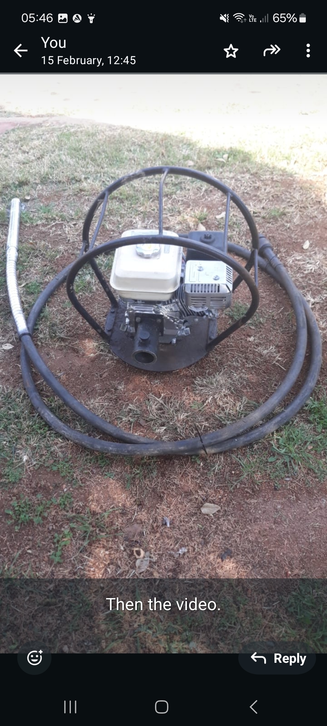 Honda GX160 Petrol Drive Unit & Vibrating Poker in excellent working condition.Fully built up and Reconditioned &serviced.Working like Champions!Hardened parts fitted to ensure longevity of equipment.New bearings fitted for vibration perfection.Contact 0836101218view more.Big Big Bargains!