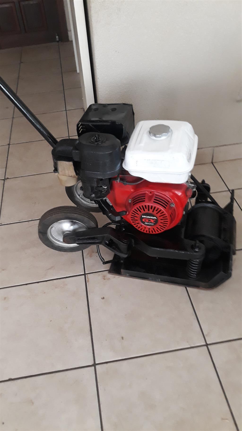 Plate Compactors -New,Used and Repairs.Quotes first!Reconditioned Units available built up like New!Guarantee in writing.South African Fully Cast steel Plate Compactor manufactured by Us.Plate size:450mm x 500mm.Travelling speed:25m squared/minute.Fitted with Honda GX270 engine 9 h.p.Spares abundantly available.