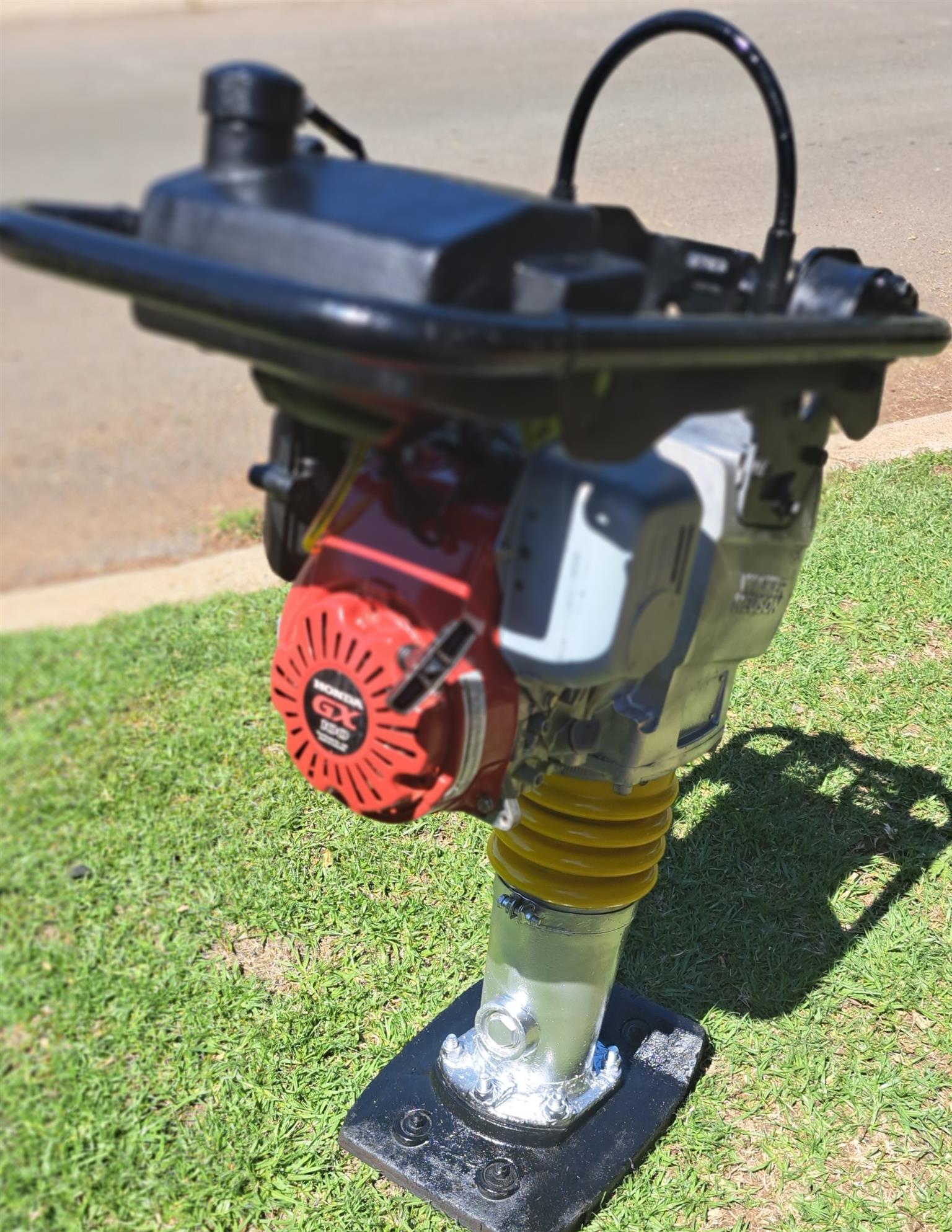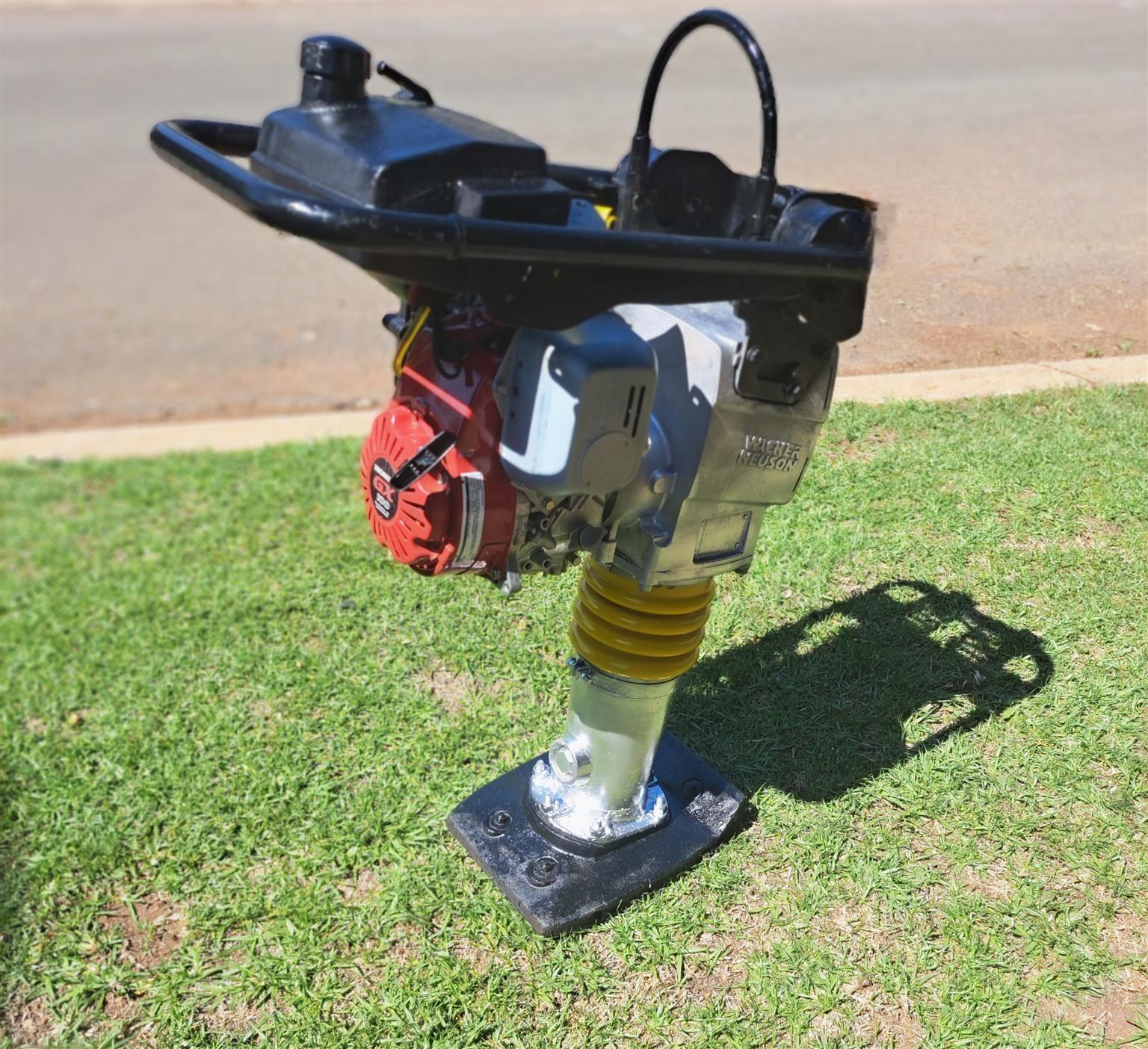 Wacker Neuson Vibrating Rammer fully Reconditioned and built up.Impact energy:16KN This Rammer has one single lever for stopping,starting and idling.No more breakable fuel taps,no more remembering to switch off the fuel tap,no more red on & off breakable switches.Inline filter fitted in tank to clean petrol.New German patented Clutch fitted.New Bellow.Guarantee of 6 months in writing.BRAND NEW Honda engine.100%German and Japanese.Upon replacing carburettor a local diaphragm carburettor can be fitted at a fraction of the original price.The most Economical Wacker Rammer now on the market!Quality via Economy!Big Bargain!
