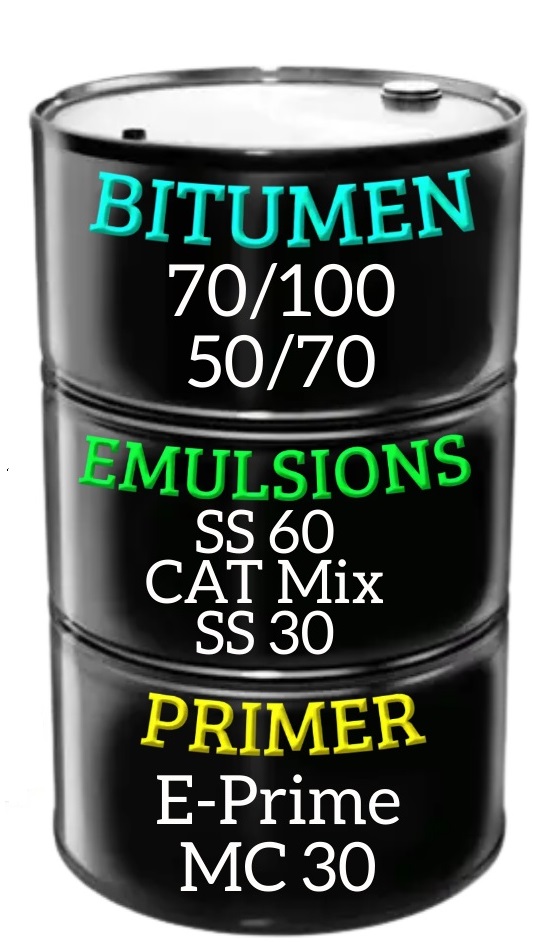 210L Drums of: Bitumen - 70/100 & 50/70Emulsions - SS60 & CAT Mix & SS 30Primers - E-Prime & MC 30 Delivery Available nation wide