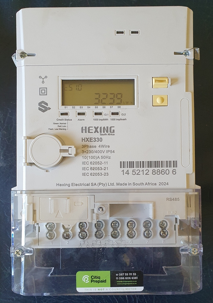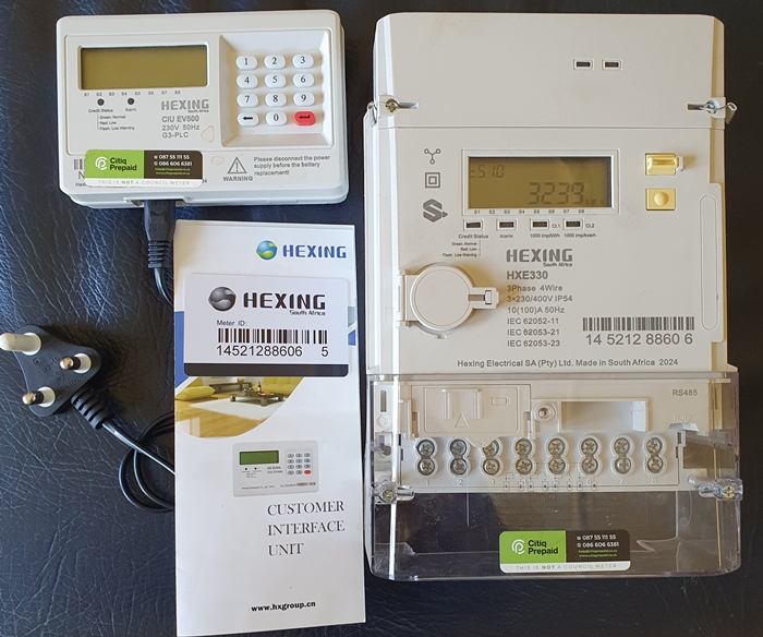Just 2 weeks old Hexing HXE330 Prepaid Sub-Meter for sale (original price R2600). Includes mobile Customer Interface Unit