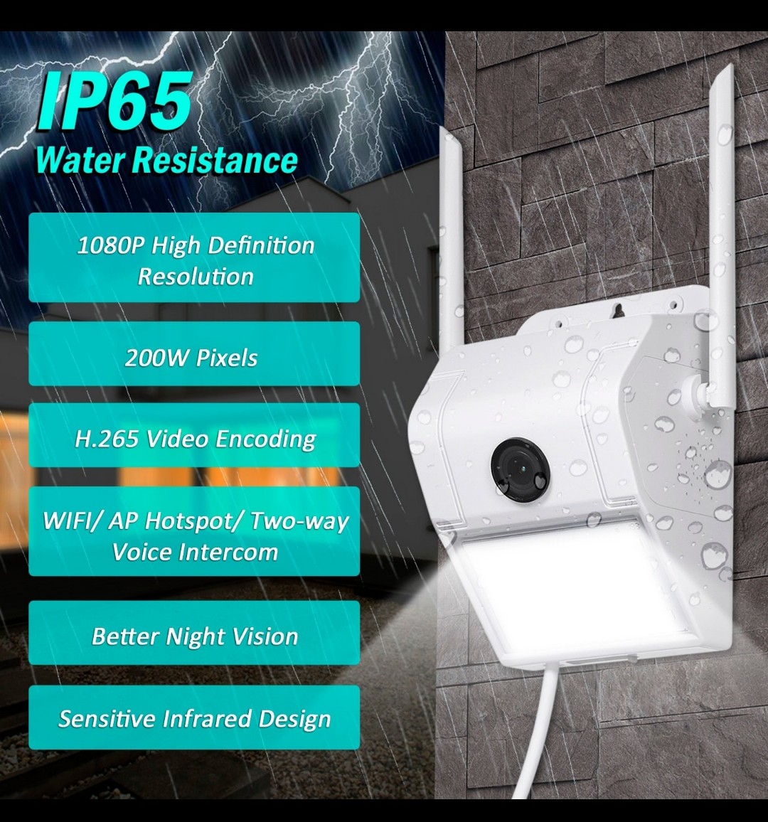 200W pixels camera, H.265 video encoding, support for cloud storage.