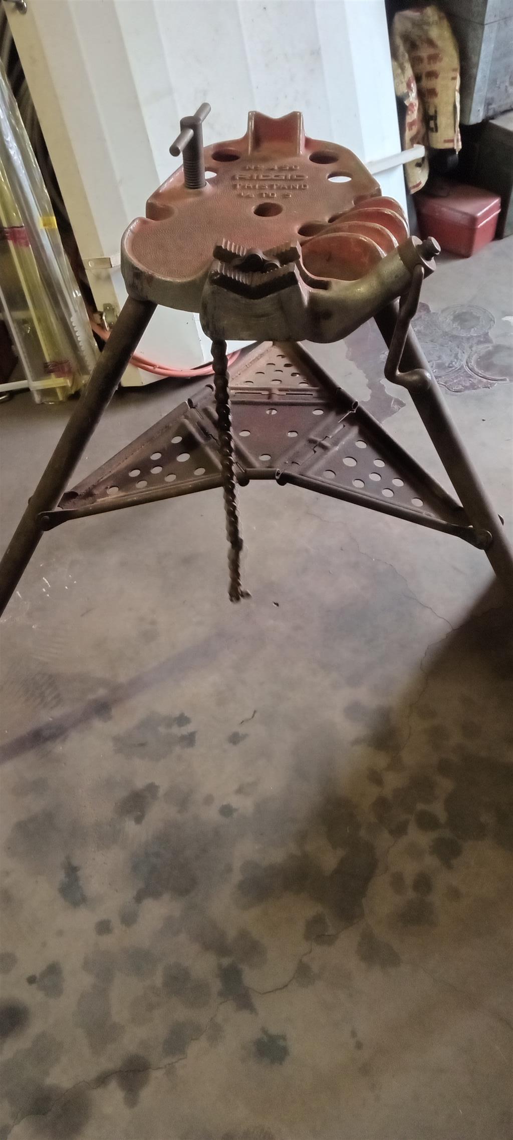 Ridged full set of stock and dies 1/2 -2" Plumbers tripod chain vice Combo. More details: