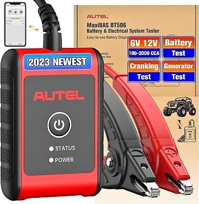 Autel MaxiBAS BT506 Battery and Electrical System Tester The Autel MaxiBAS BT506 is a battery and electrical system analysis tool that use as Adaptive Conductance an advanced battery analysis method, to produce a more accurate examination of the batteries cold cranking ability and reserve capacity, vital to determining a batteries true health. Why Choose Autel MaxiBAS BT506? • Professional Battery Tester & Analysis Tool: Test 12V & 24V cranking/charging systems and test 6- and 12-voltbatteries: 100 - 2000 CCA, supports all types of batteries, it can test Flooded, AGM, AGM Spiral, EFB and GEL batteries. And is compatible with CCA, CA, SAE, EN, IEC, DIN, JIS and MCA. • Easy to Use - Your smart phone connects to the BT506 via wireless Bluetooth and performs testing and displays test results. The free APP can be downloaded from APP Store for IOS or Google store for Android. • Two Test Methods: Supports in-vehicle and out-of-vehicle testing. • Lifetime Free Software Update: you can enjoy a free software upgrade for one year. After one year, you do not need to purchase the upgrade, it will not affect the normal use of the device. Features: • Support in-vehicle and out-of-vehicle testing of passenger vehicle batteries. • Test 6- and 12-volt batteries: 100 - 2000 CCA. • Test 12- and 24- cranking/ charging systems. • Test Flooded, AGM, AGM Spiral, EFB and GEL batteries. • Compatible with CCA, CA, SAE, EN, IEC, DIN, JIS and MCA.
