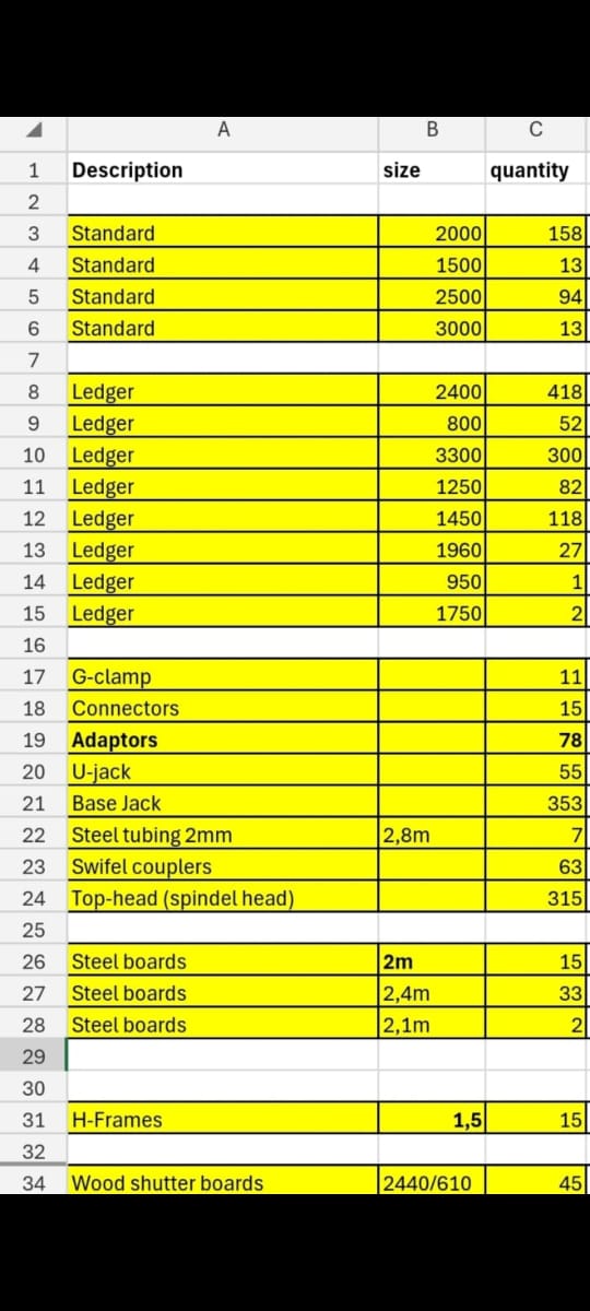 Various scaffold / formwork: