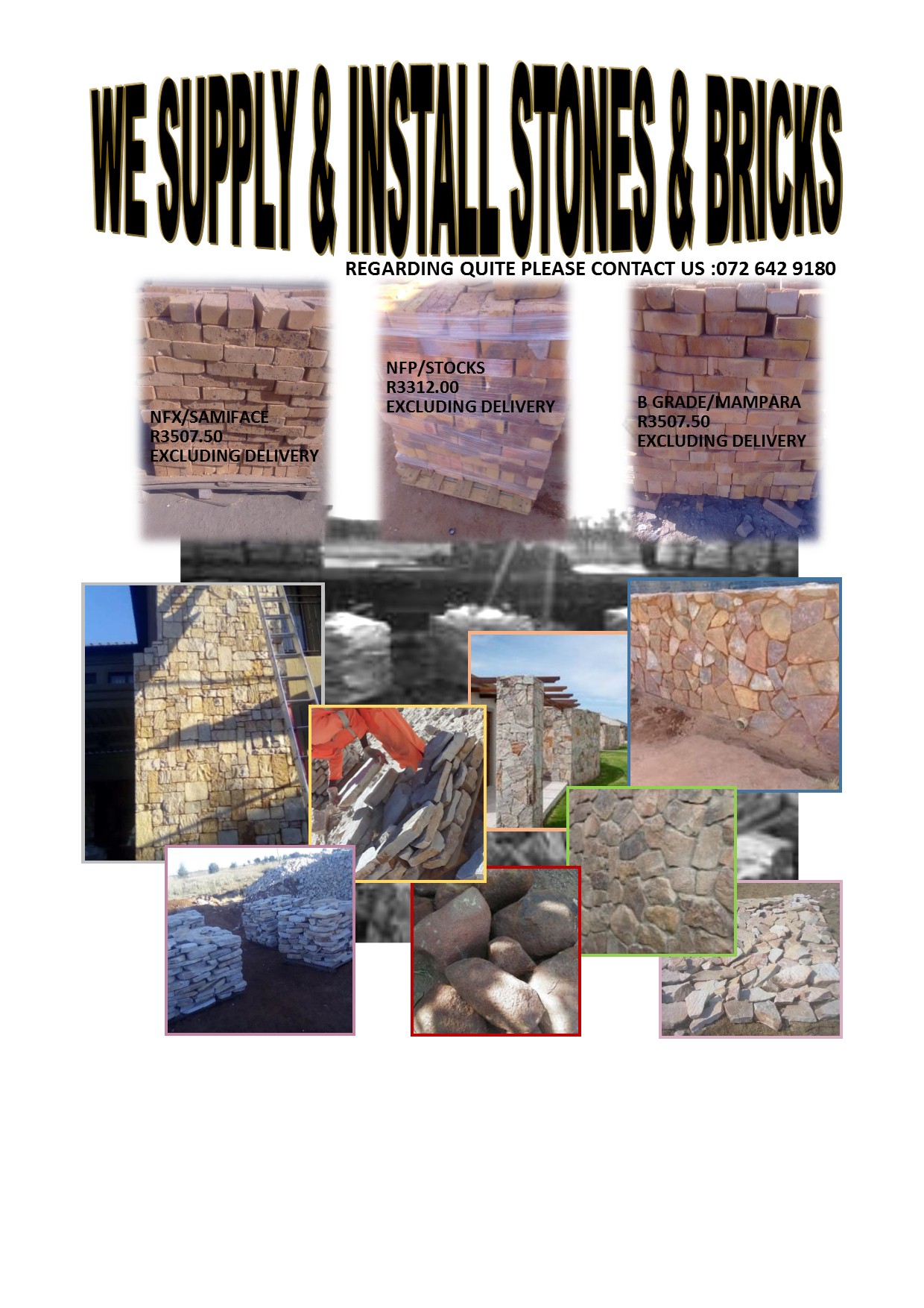 -Cost price for Samiface (NFX) bricks delivered to kwamhlanga or Bronkhorstspruit R3947.50 per 1000 bricks/two pallets