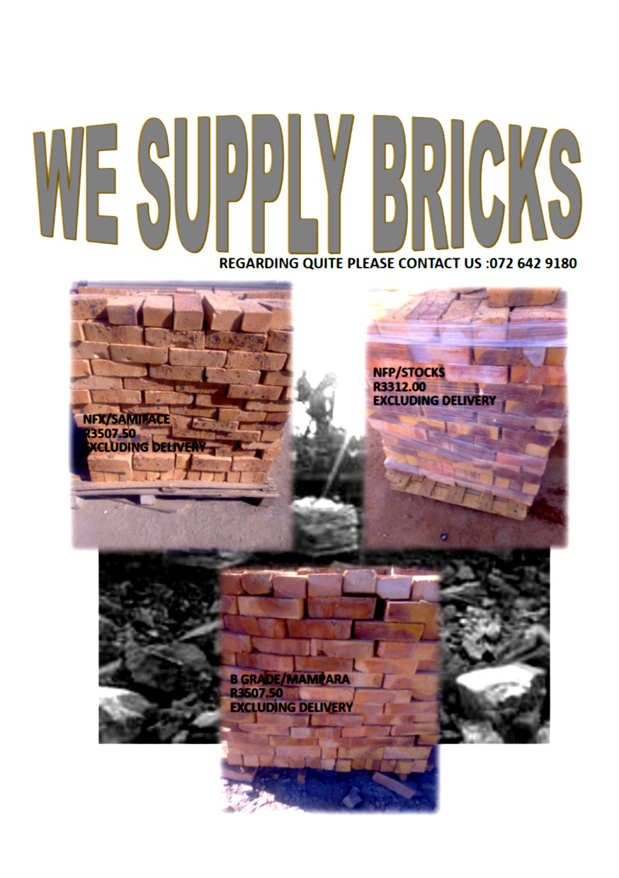 -Cost price for Stocks (NFP) bricks delivered to kwamhlanga or Bronkhorstspruit R3752.00 per 1000 bricks/two pallets