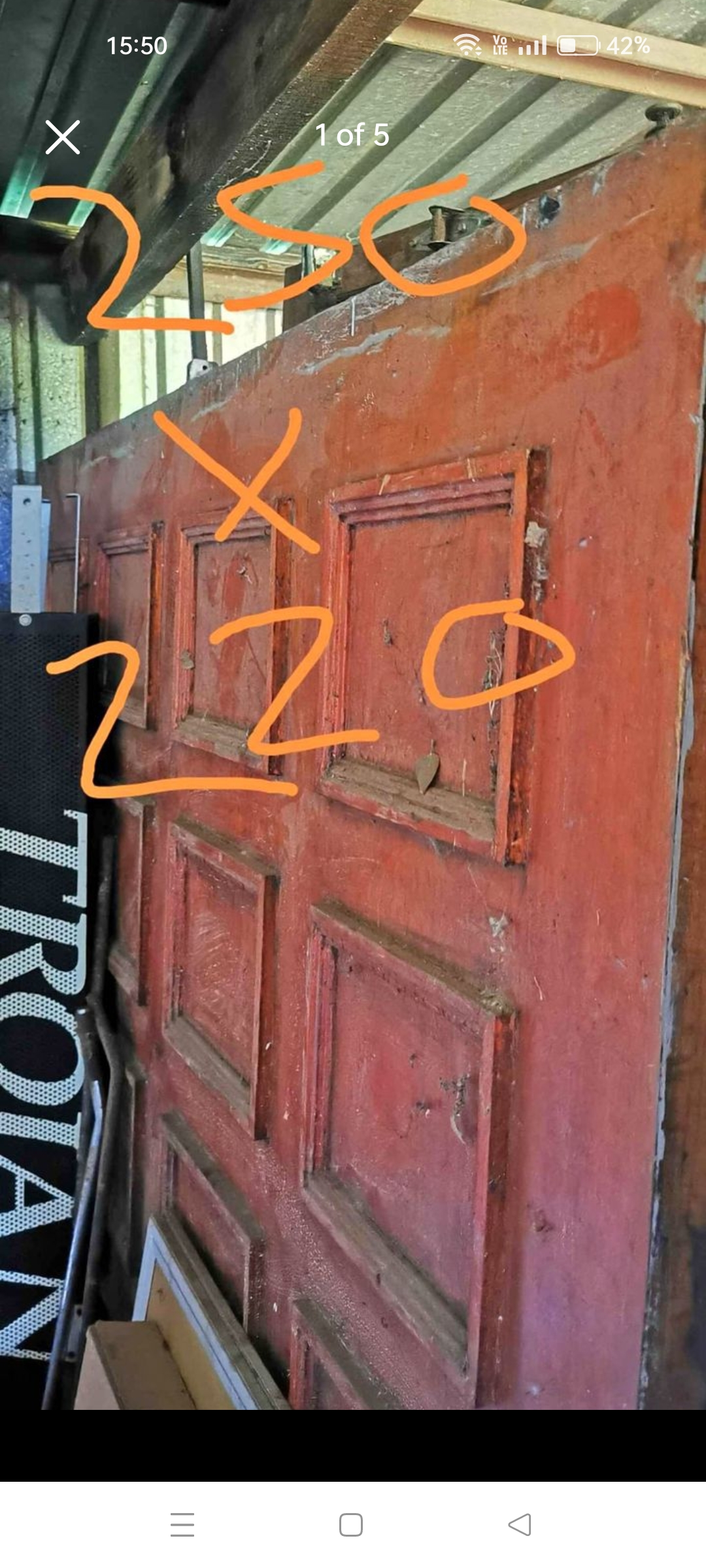 Soliedehout garage deure.. 250x220 soliede deure(2 van hulle) en n konsertiena deur van 245x225 net een deur..... Ohb