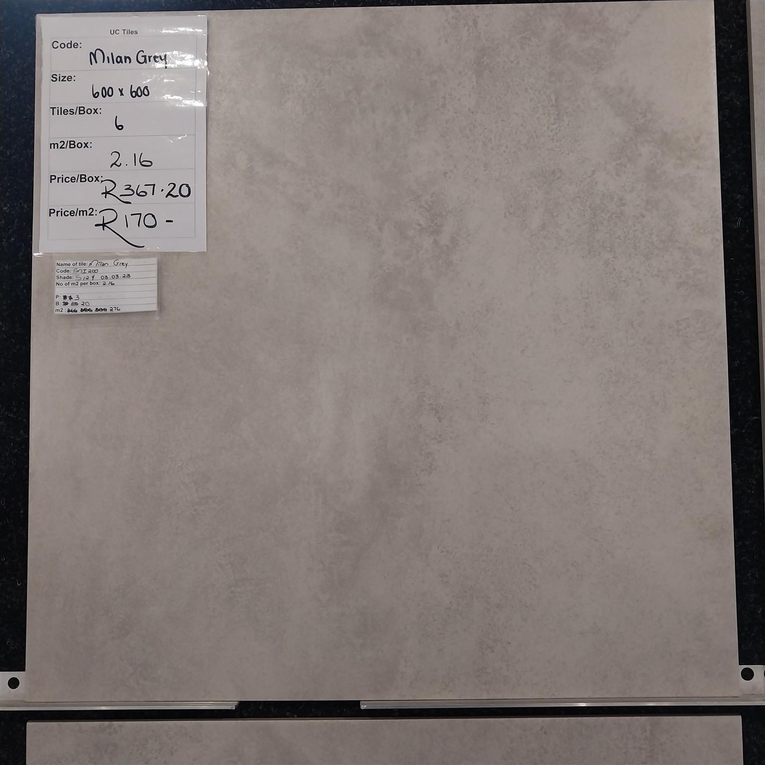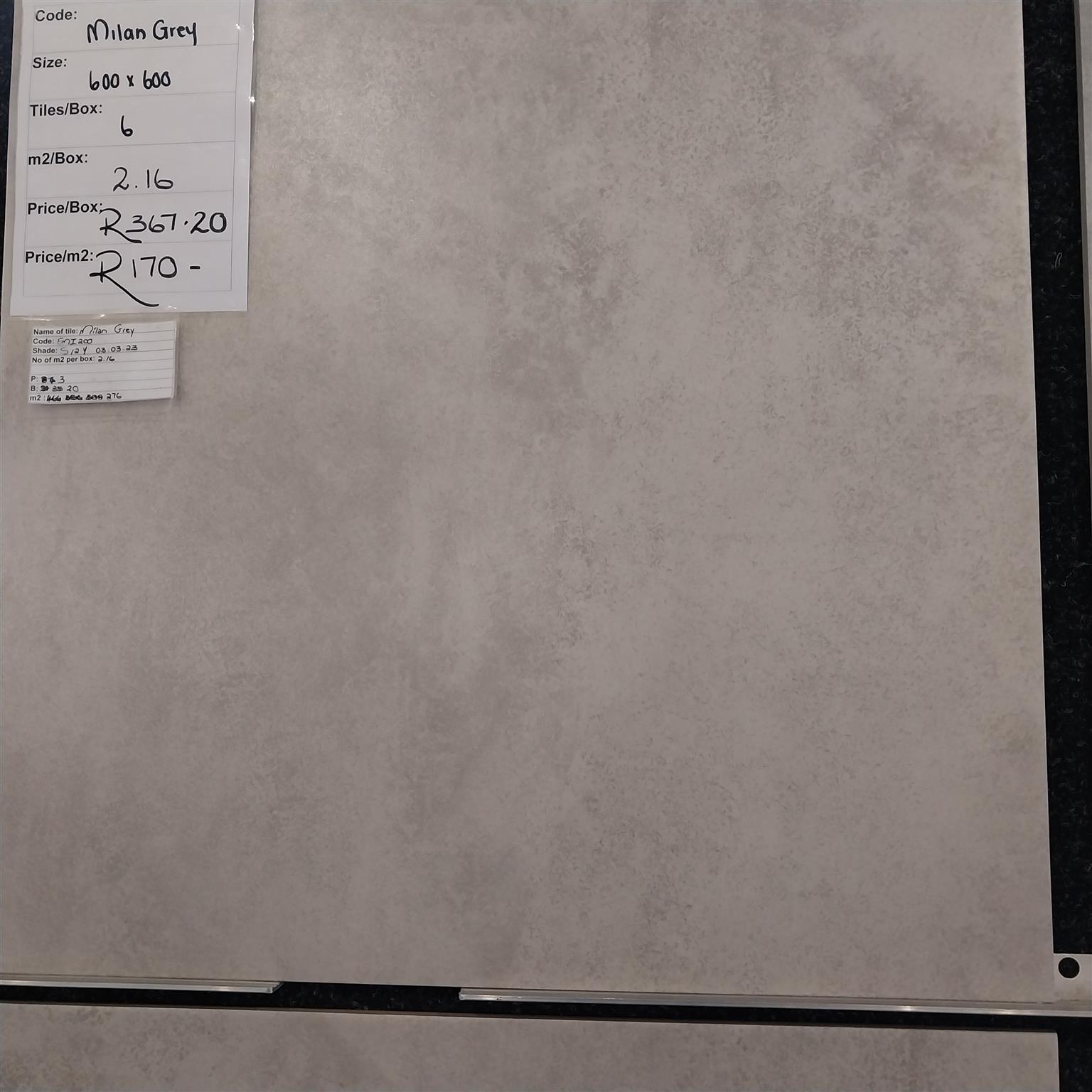 Milan Grey 600x600mm 1st Grade porcelain wall and floor tiles R 170,00 per square meter R 367,20 per box