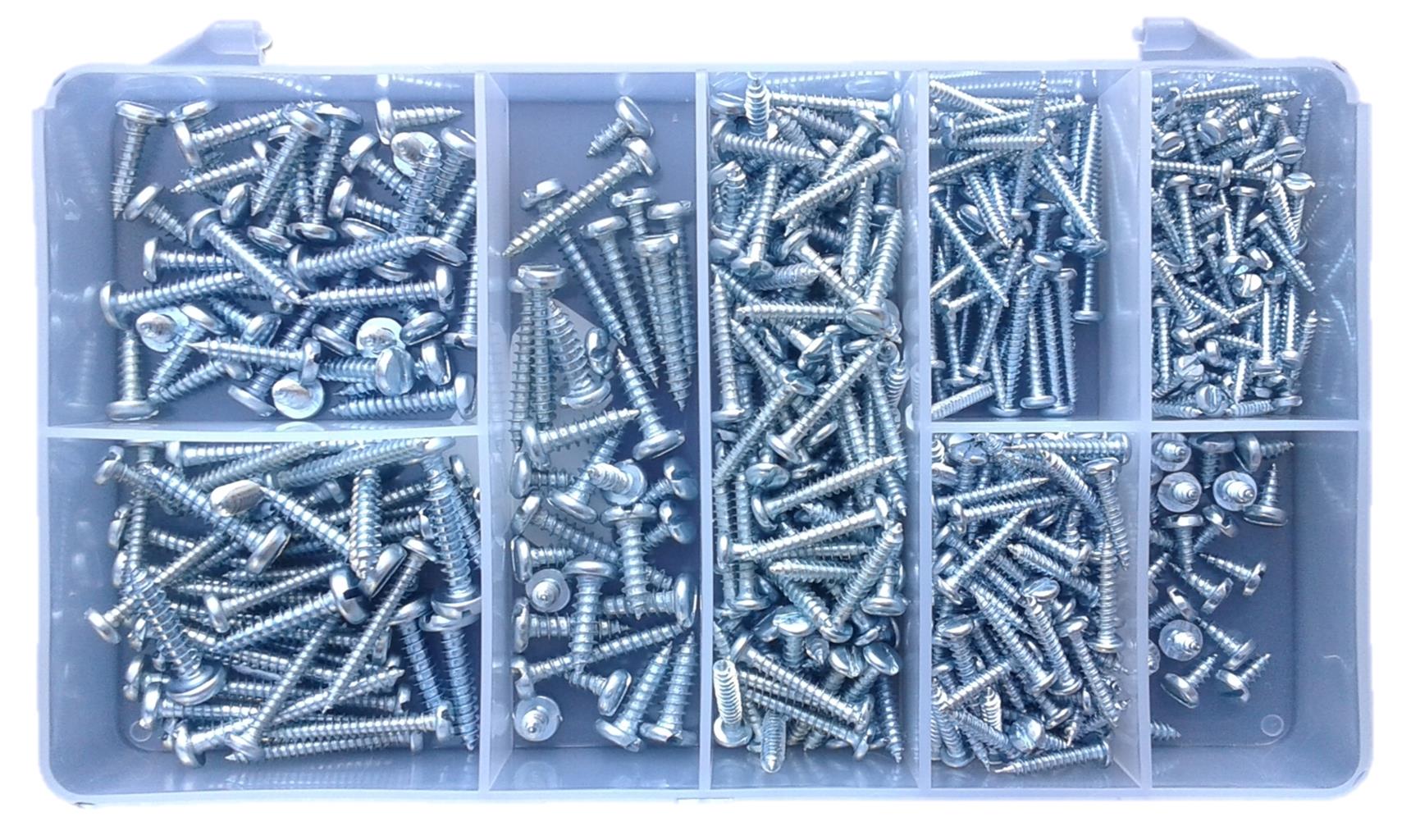 SELF TAPPING SCREWS, Zinc Plated, Pan Head, Slotted - 500 Pieces.