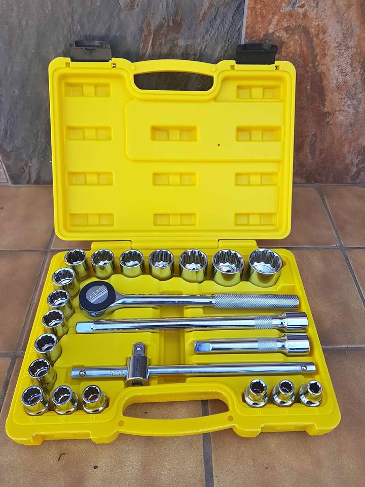 A 1/2" 22-piece spline socket set is a versatile tool kit commonly used for automotive repair, machinery maintenance, and other mechanical applications. Here's an overview of what such a set typically includes: ### Key Features:... - **Socket Drive Size:** 1/2 inch drive. - **Spline Design:** Spline sockets are designed to work with various fastener types such as hex, square, 12-point, and spline bolts. The spline design provides more contact points on the fastener, reducing the chance of rounding off or damaging fasteners. - **Set Size:** 22 pieces usually include a range of sockets in both SAE (inch) and metric sizes. - **Materials:** Typically made of durable chrome vanadium steel or another strong alloy, with corrosion-resistant finishes. - **Ratchet Wrench:** The set may include a 1/2" drive ratchet wrench, along with extensions and possibly universal joints. - **Carrying Case:** Often, these sets come in a rugged carrying case for easy organization and portability. ### Uses: - **Automotive repair** - **Industrial machinery maintenance** - **Heavy-duty applications** Dixie tools is closed on Sunday's.