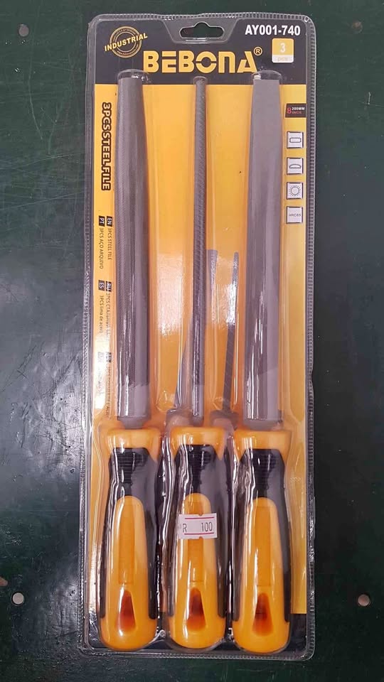 BRAND NEW STEEL FILE SET. 200 MM HALF-ROUND FILE 200 MM SQUARE FILE 200 MM FLAT FILE IT'S A VERY HANDY FILE SET TO HAVE AROUND THE HOUSE OR AT THE WORKPLACE.