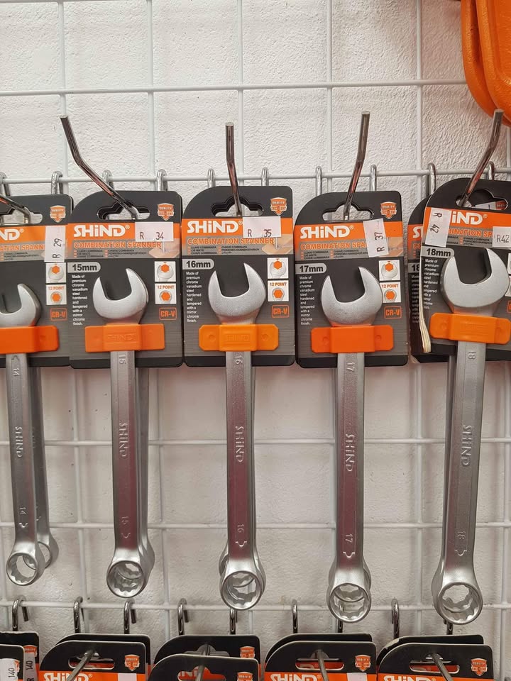 BRAND NEW INDIVIDUAL SHIND COMBINATION SPANNERS ITS MADE OF CHROME VANADIUM STEEL ITS VERY GOOD QUALITY. THE SIZES AND PRICES IS AS FOLLO. 6 MM R 15 7 MM R 17 8 MM R 20 9 MM R 20 10 MM R 20 11 MM R 20 12 MM R 25 13 MM R 27 14 MM R 29 15 MM R 34 16 MM R 35 17 MM R 37 18 MM R 42 19 MM R 45 20 MM R 47 21 MM R 50 22 MM R 60 24 MM R 70 25 MM R 70 26 MM R 75 27 MM R 80 28 MM R 95 29 MM R 100 30 MM R 110 32 MM R 115 IT'S A VERY HANDY TOOL SET TO HAVE AROUND THE HOUSE OR AT THE WORK PLACE.