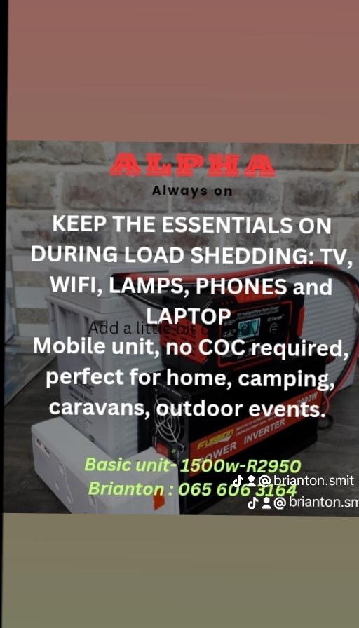 Backup power during load shedding, inverter, 100ah gel battery and charger, UpTo 8 hours backup power