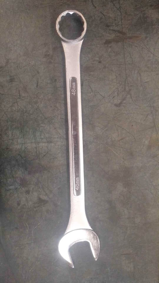 48 MM COMBINATION SPANNER IT'S MADE OF CHROME VANADIUM STEEL. IT'S A VERY HANDY TOOL TO HAVE AROUND THE HOUSE OR AT THE WORKPLACE.
