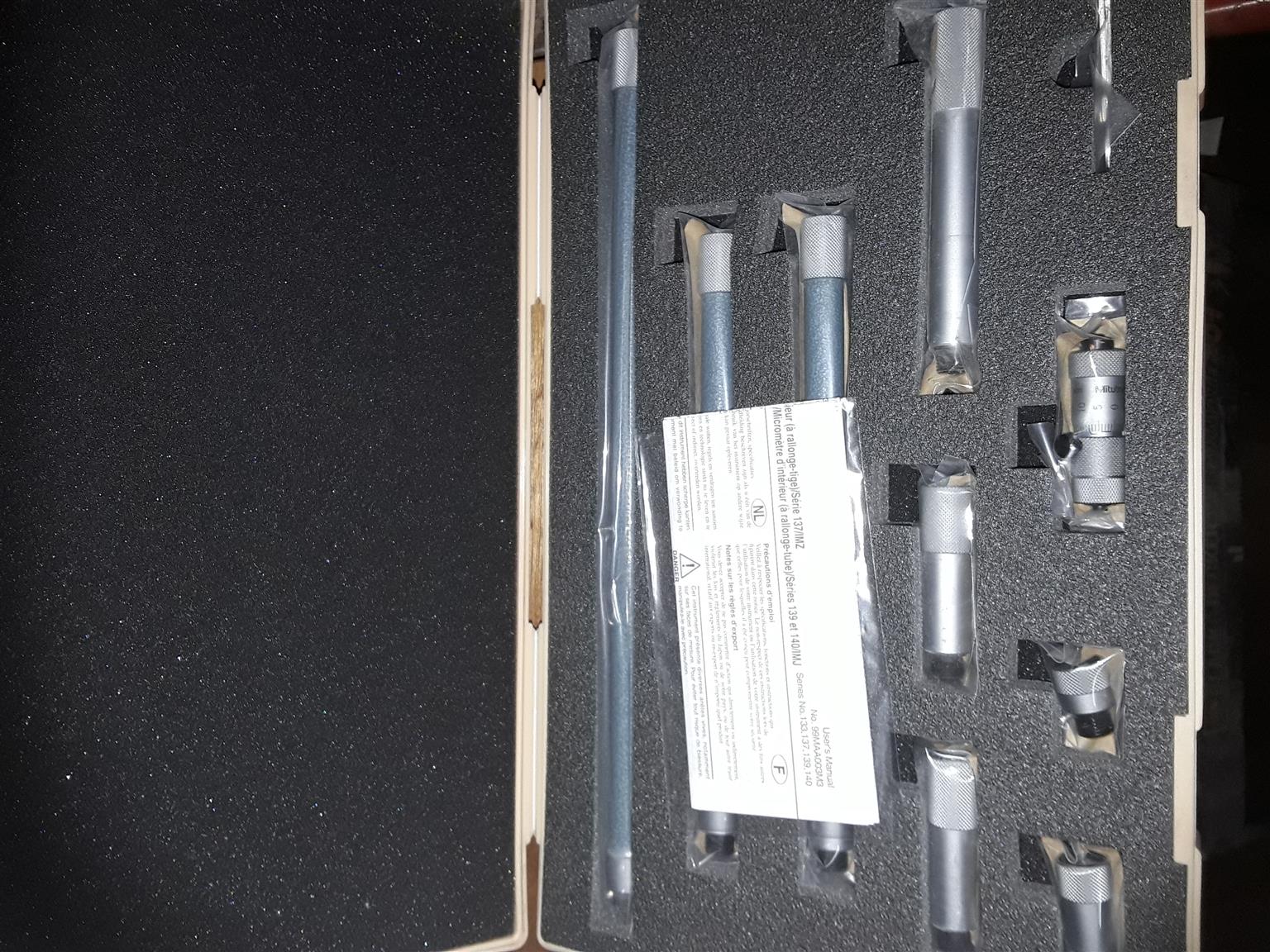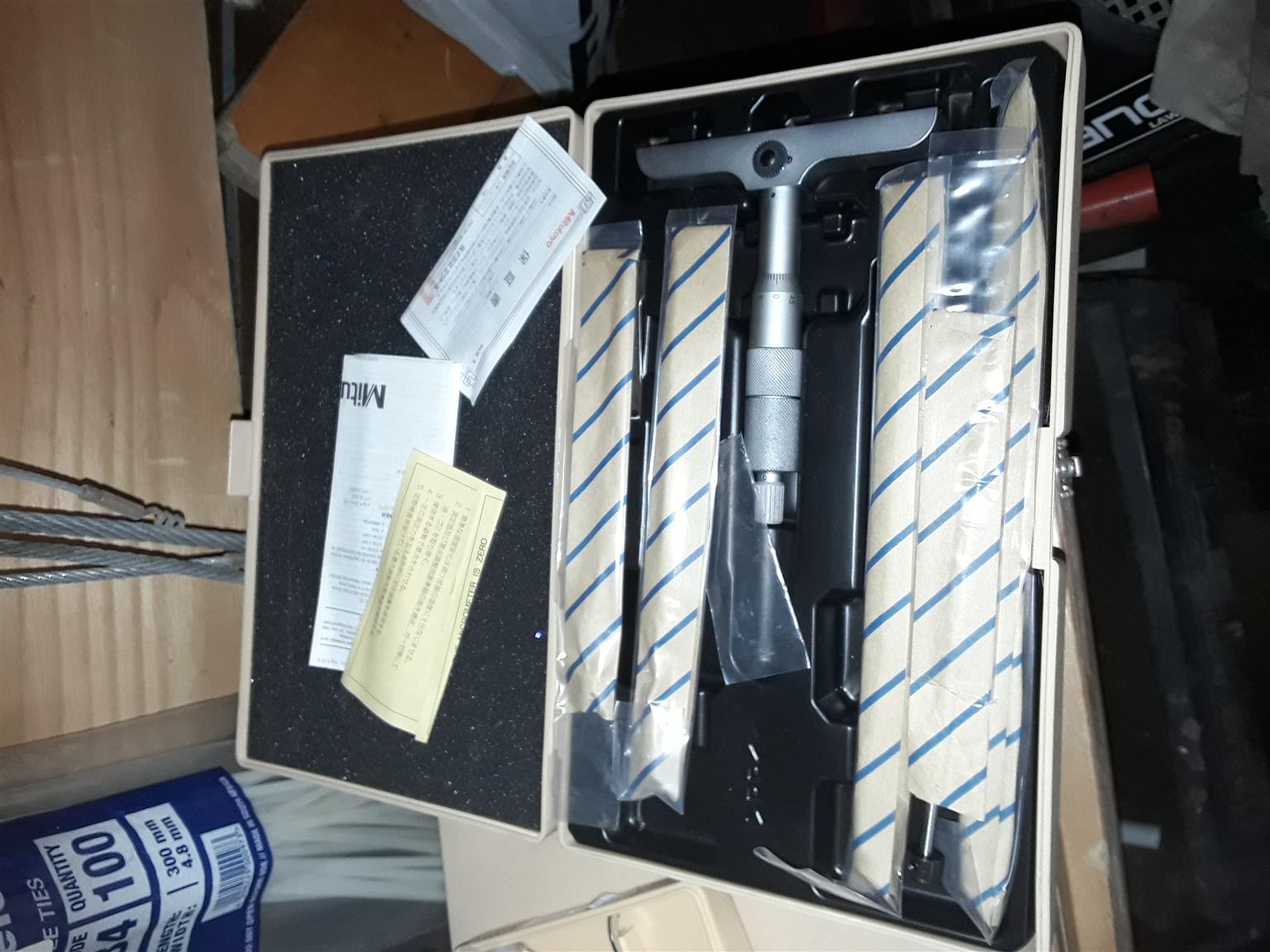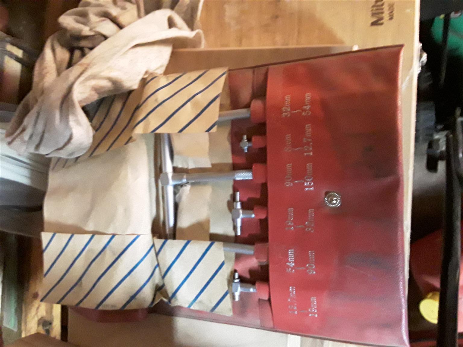 Set of various Mitutoyo inside and outside micrometers from 0 to 25mm, up to 300mm, plus 100 to 150 mm depth micrometer, set of telescopic gauges, all brand new