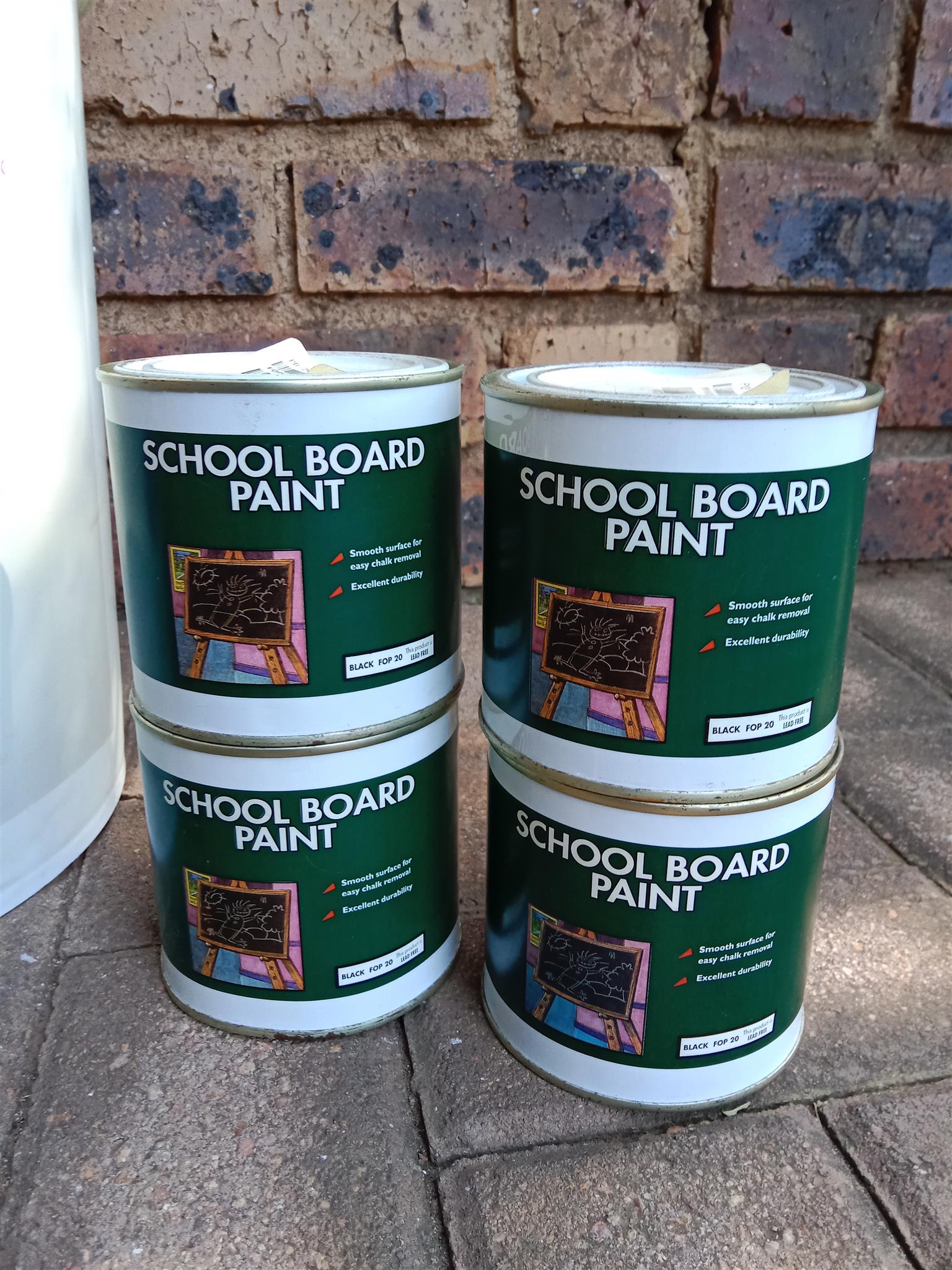 4x Black School Board Paint (500ml each): BRAND NEW! Never been opened. Transform any surface into a chalkboard for notes, drawings, or menus. Great for kids' rooms, kitchens, or cafes!
